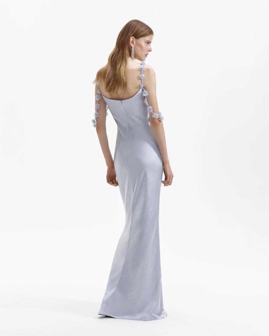 Worn once for a rehearsal dinner in October! Dry-cleaned immediately after. Stunning dress! Full details available here: https://us.self-portrait.com/products/blue-satin-flower-maxi-dress?srsltid=AfmBOoofj0qogrMu42GRoQjPb6PCeYbzRSmWySRdJx1-DYMGqOvfY5iWR2A&gQT=1
