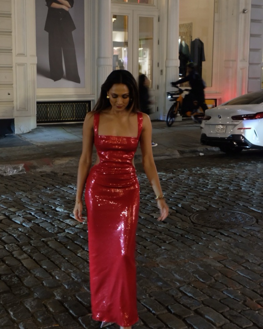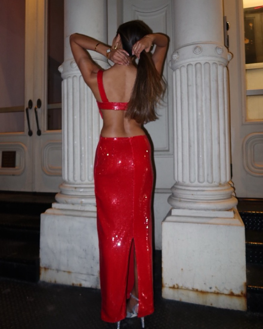 Red sequin dress from Meshki, perfect for NYE/Holidays