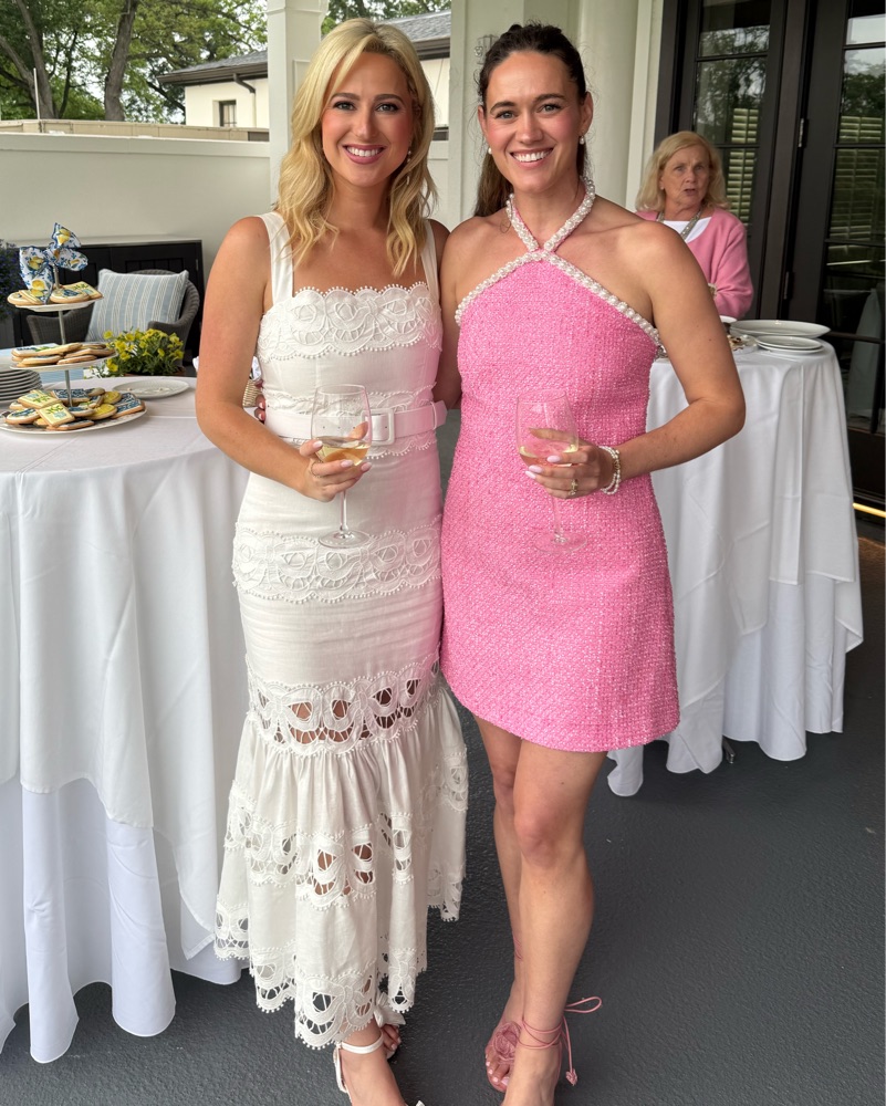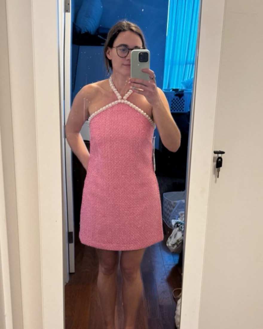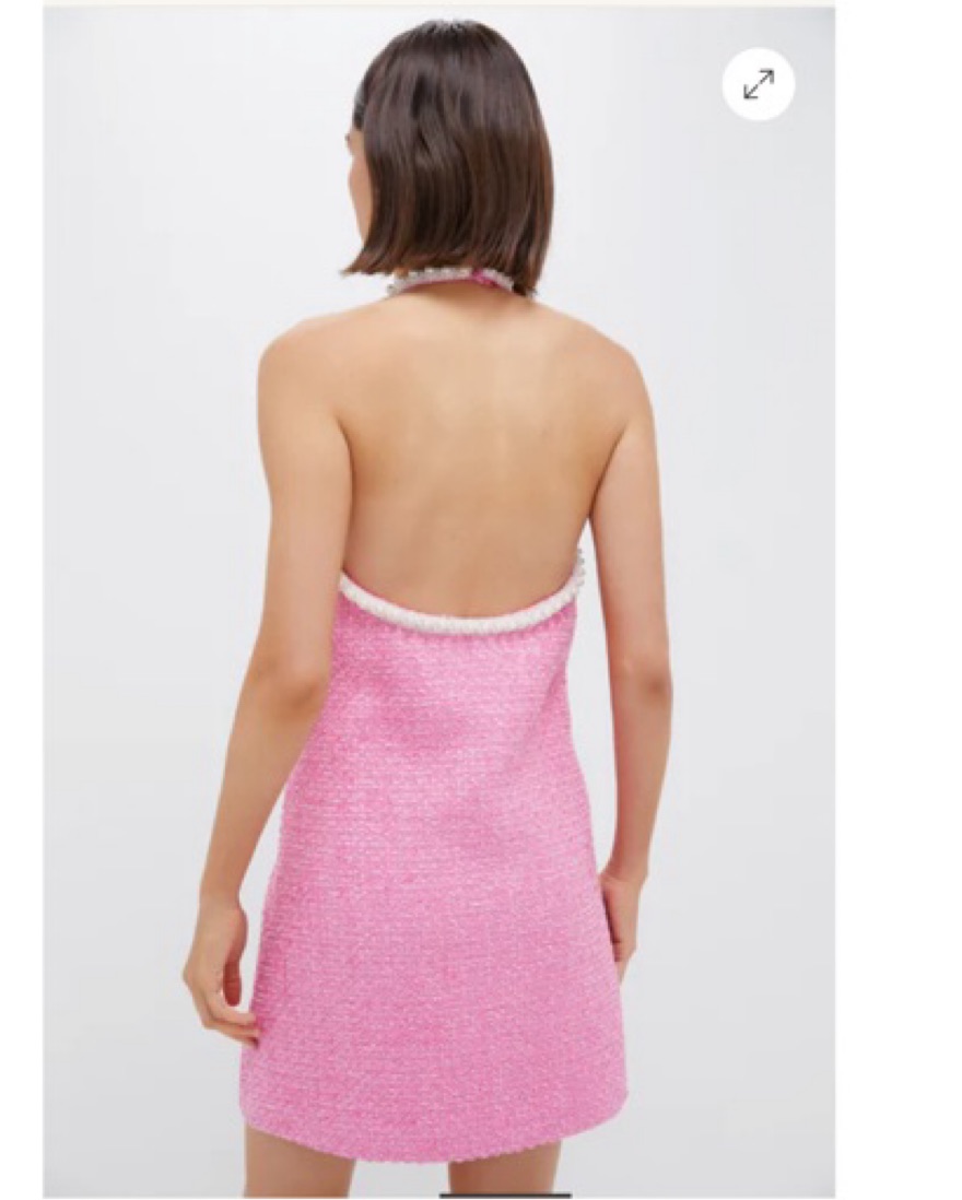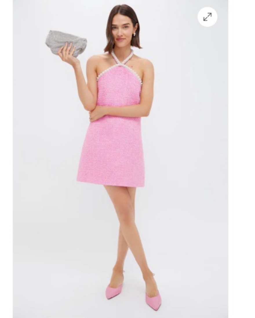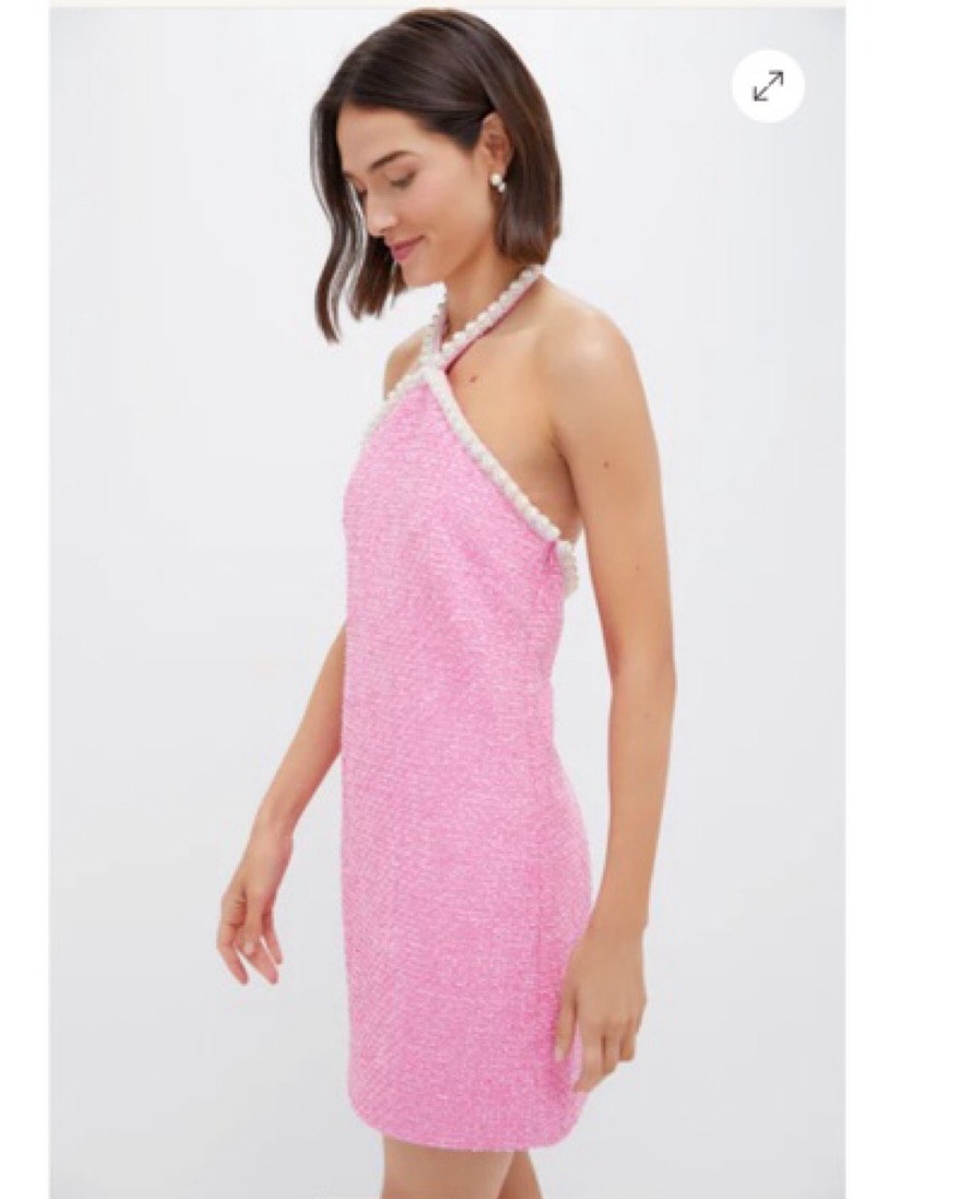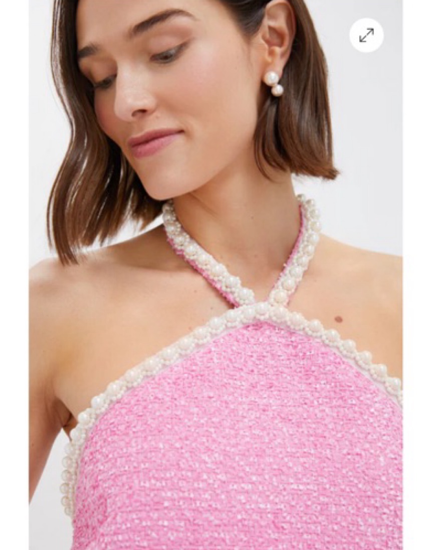 Absolutely adorable dress from Tuckernuck / Hyacinth House! Pink tweed and pearl halter neck detailing. Perfect spring/summer dress for any event! Only worn once