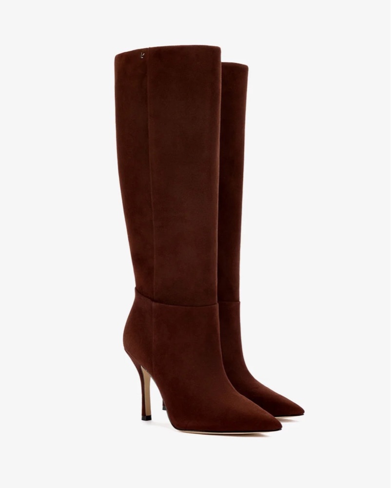 These sophisticated brown suede knee-high boots are perfect for making a fashion statement. Pair them with dresses, skirts, or jeans for a chic, elevated look.