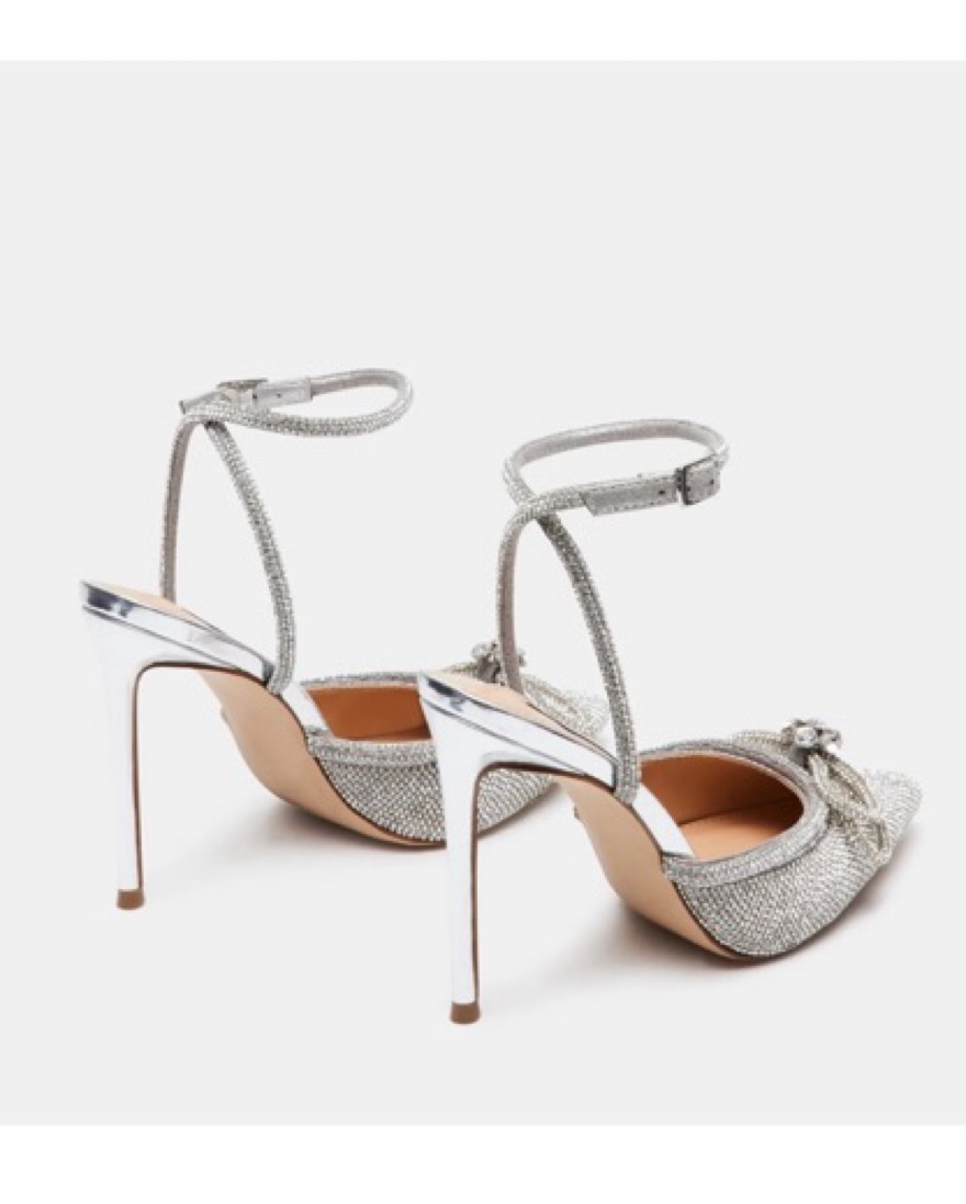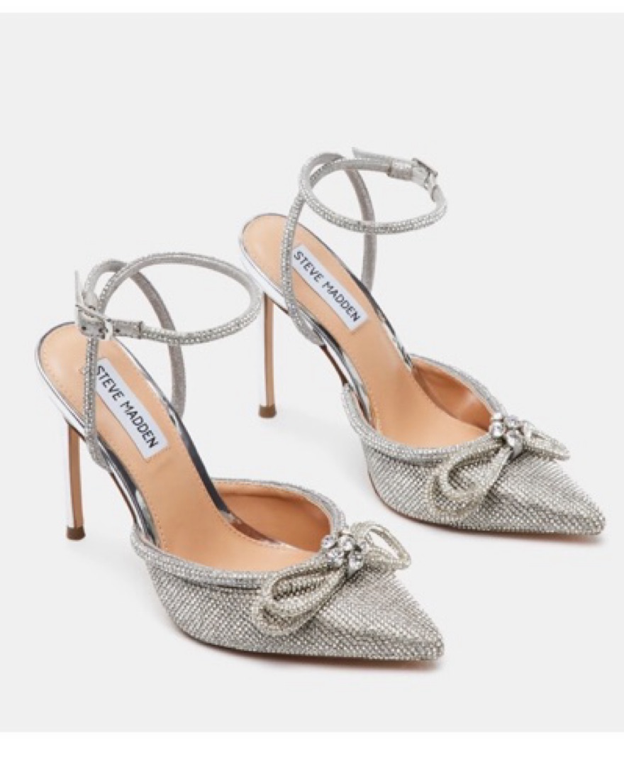 Steve Madden, size 8, full rhinestone silver heels with bow