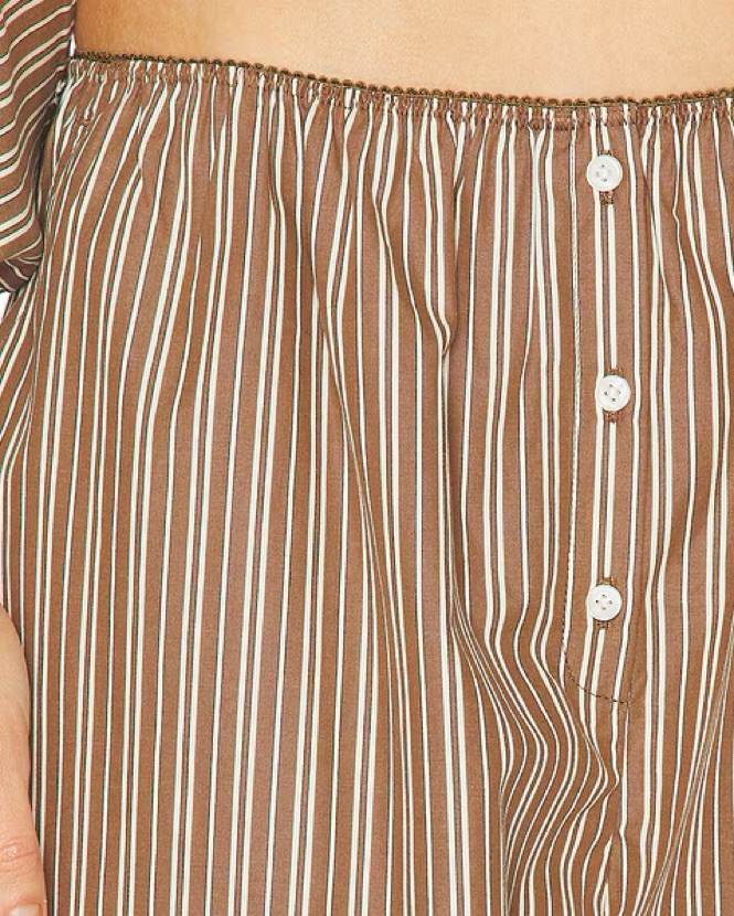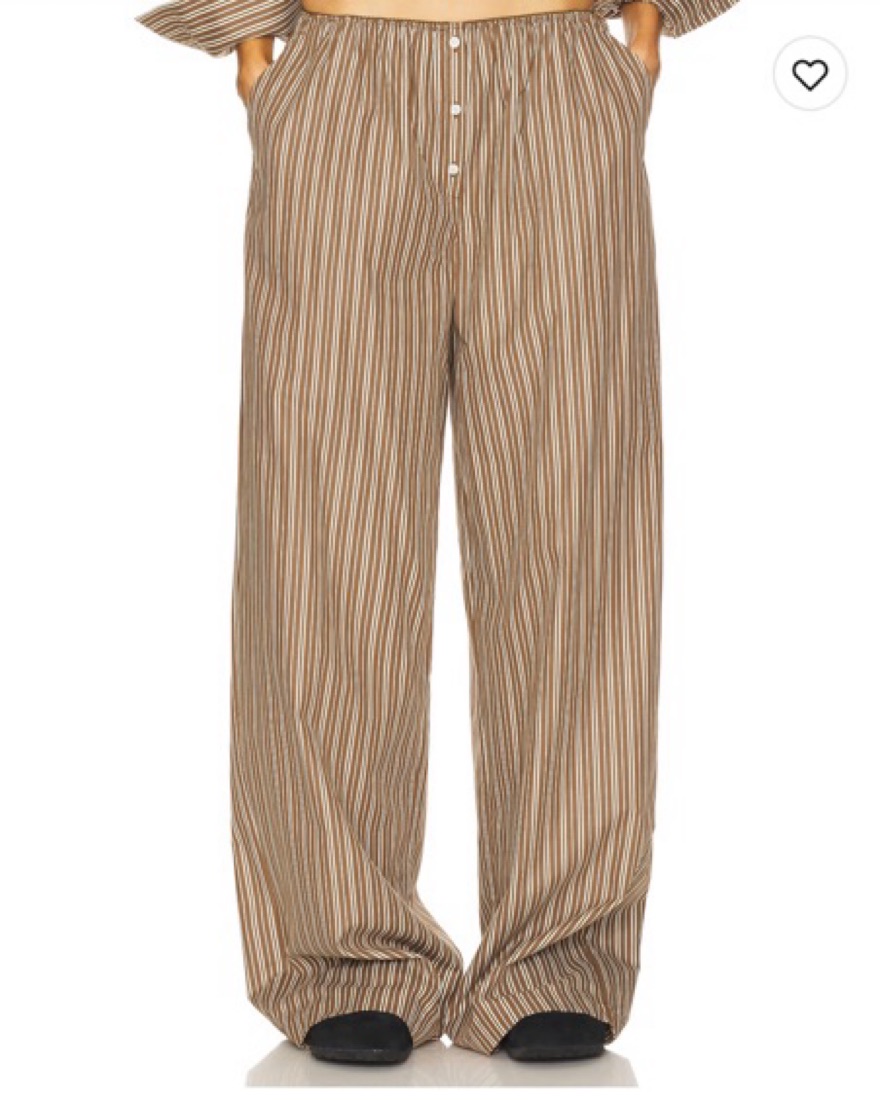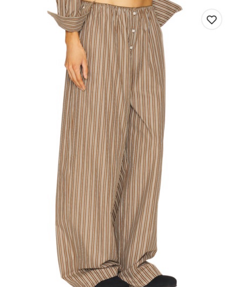 NEW Helsa pinstripe poplin house pant in brown and cream stripe. Oversized with elastic waistband. These have been hemmed from the original length.
