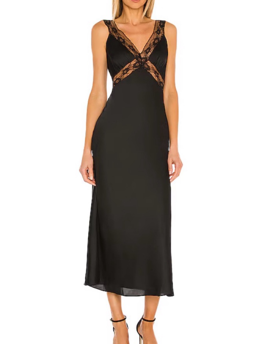 Revolve/Majorelle Black Lace Midi Dress by Revolve - Pickle