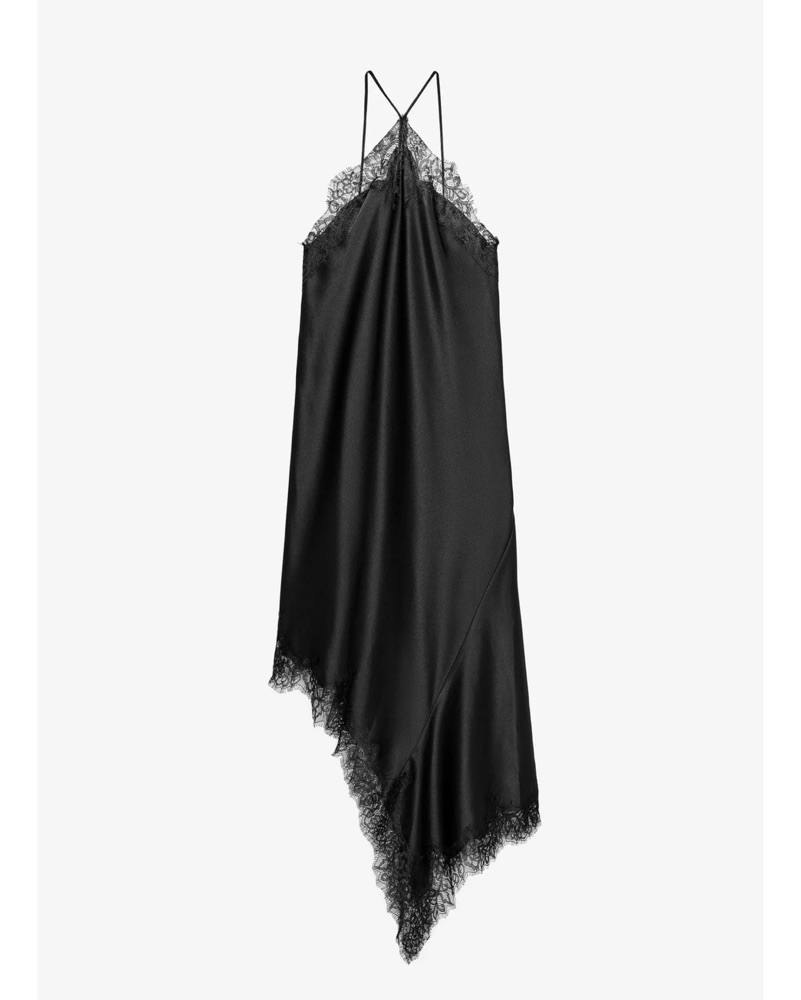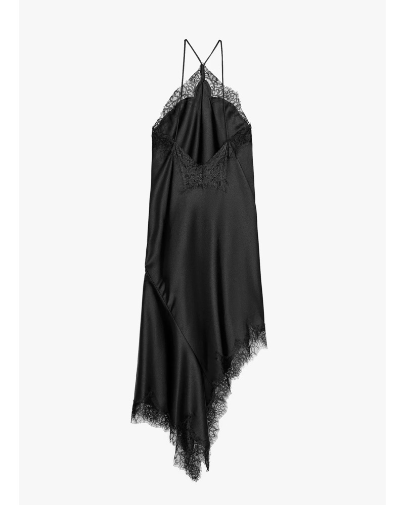 Black Lace Satin Midi Dress by ZARA - Pickle