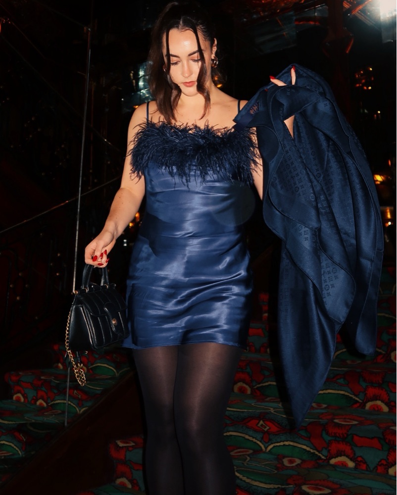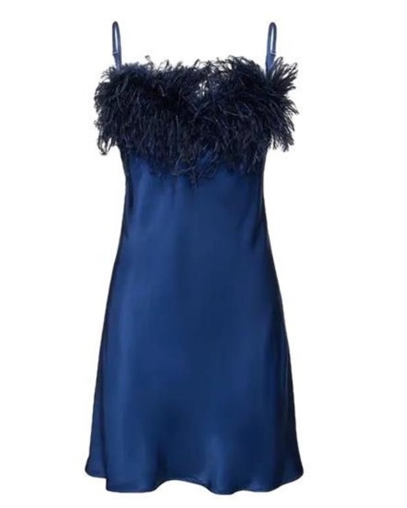 Navy silk with feathers