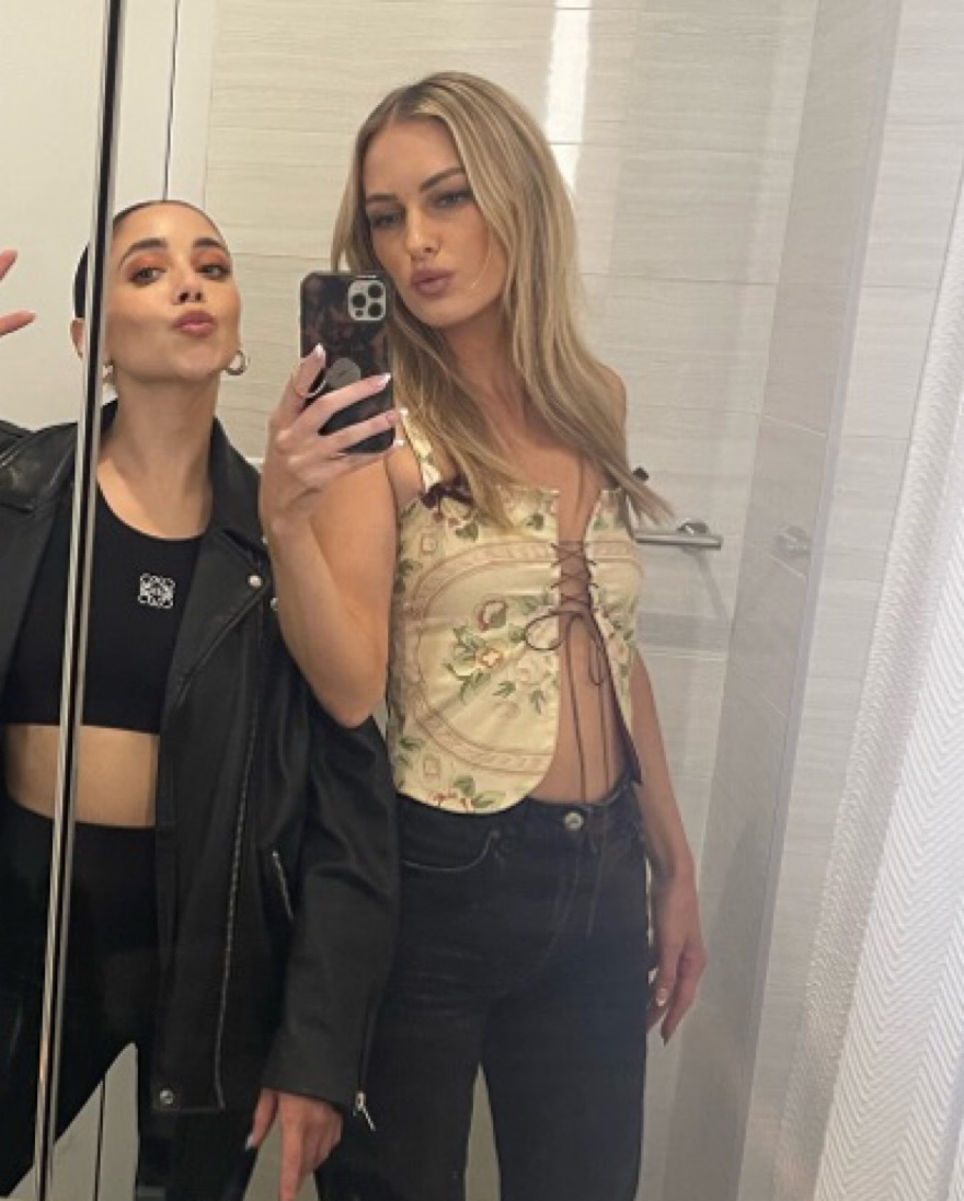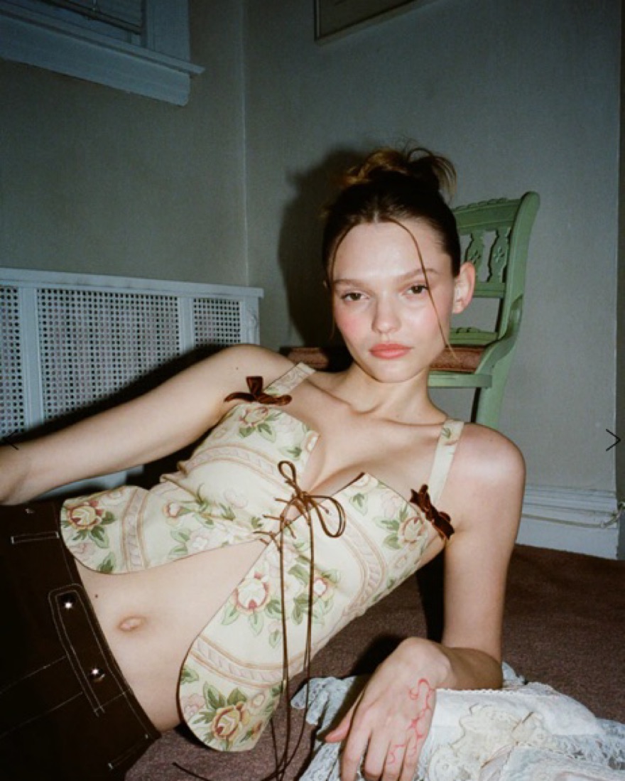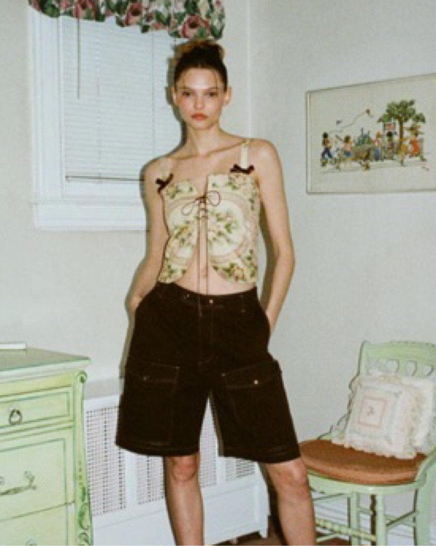 Top with leather ties and open front with bow embellishments