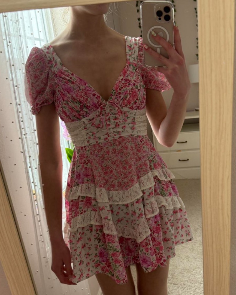 This adorable floral mini dress is perfect for a summer garden party or brunch with friends.