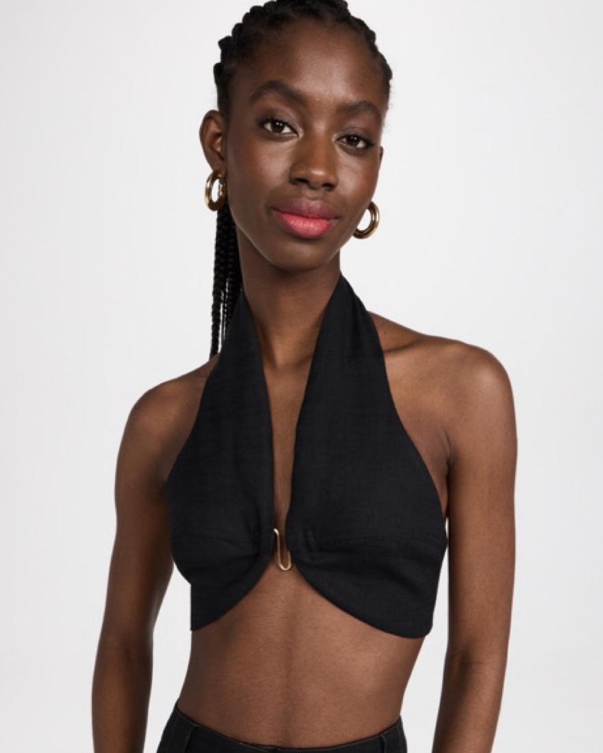 Cult Gaia Black Cropped Halter Top