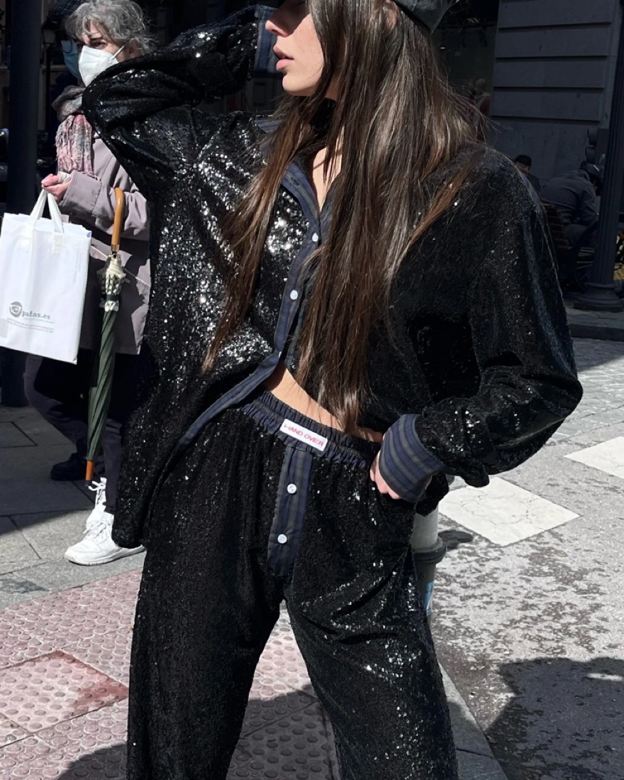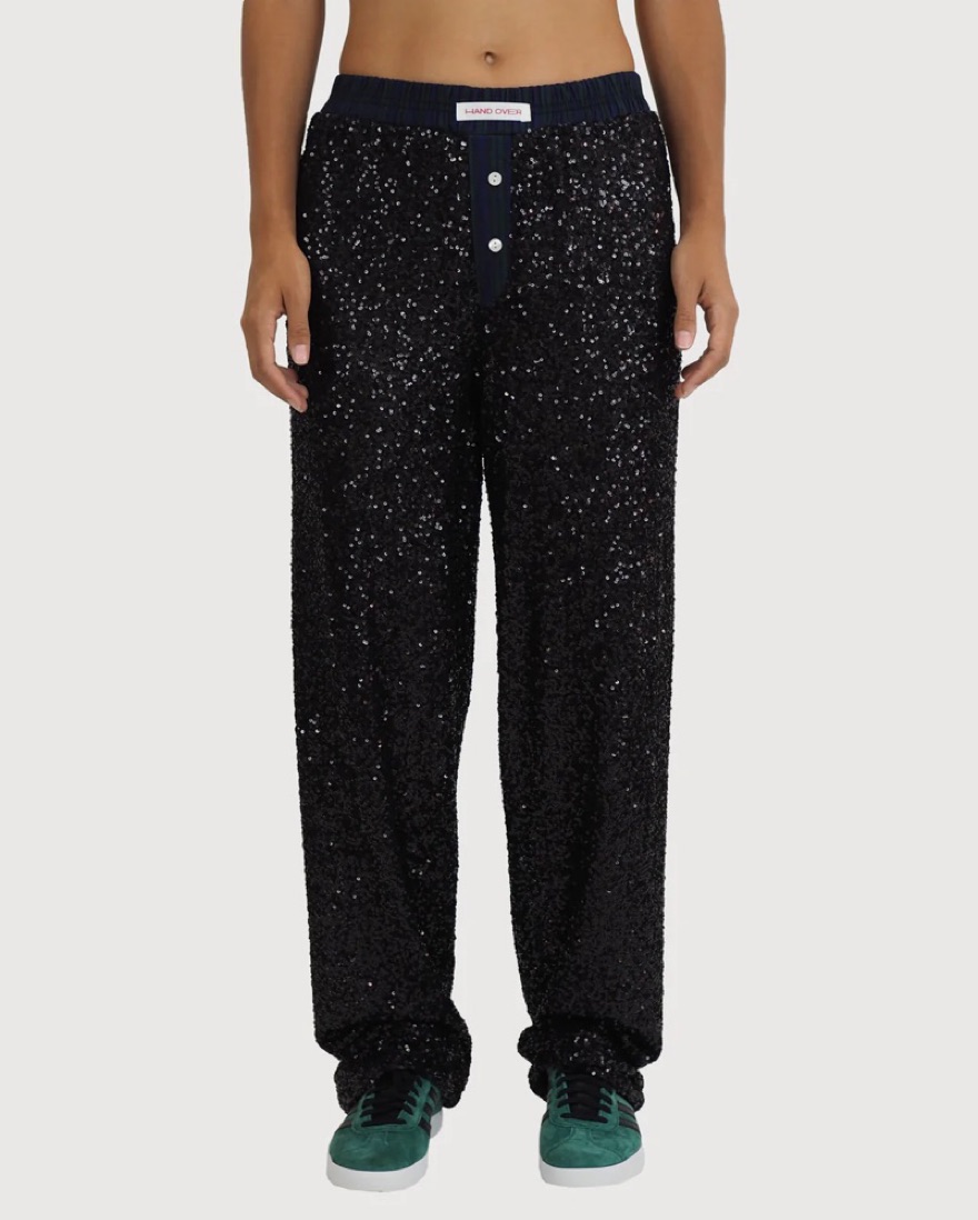 Handover Black Sequin Pants by HANDOVER - Pickle