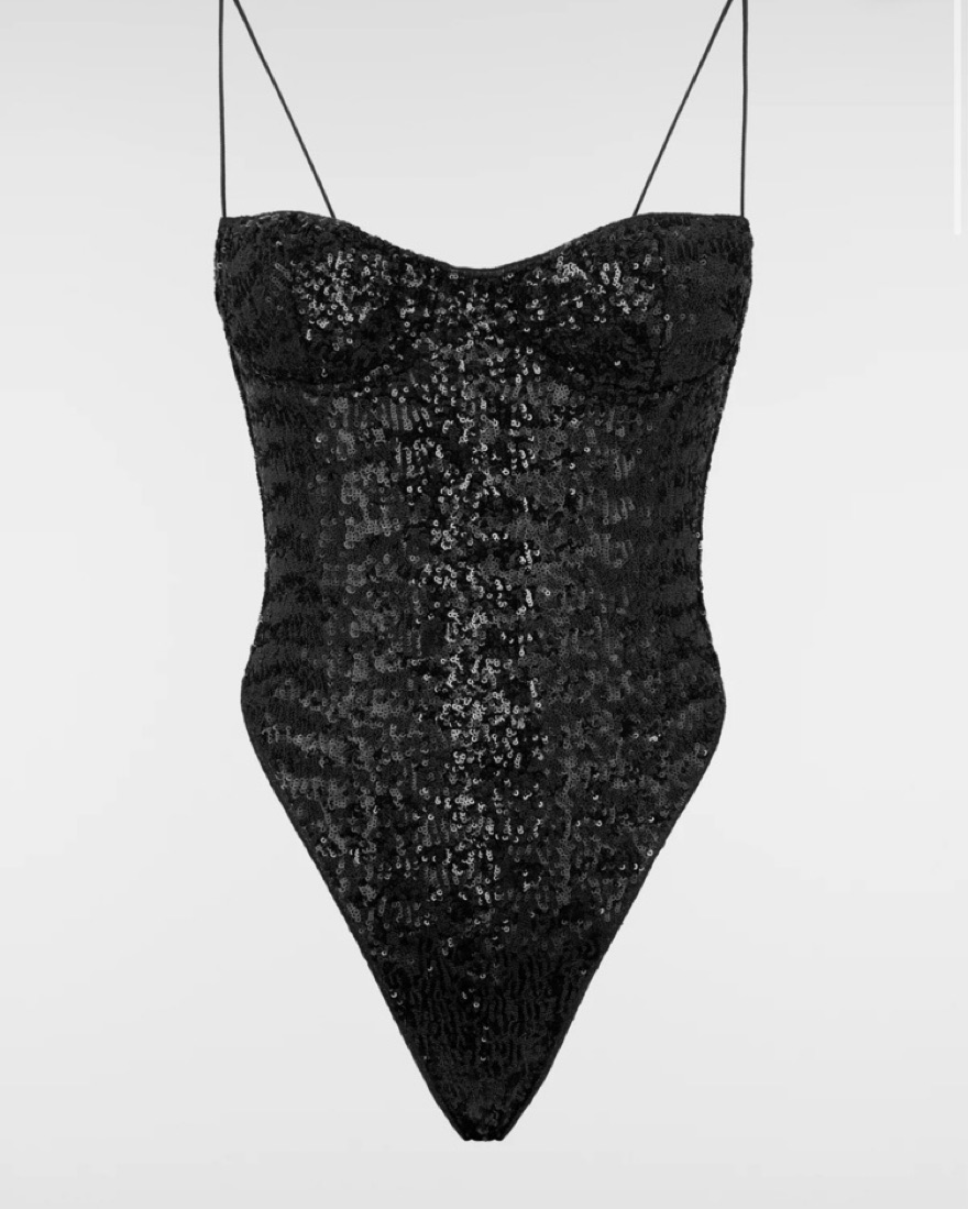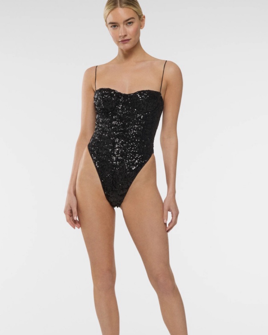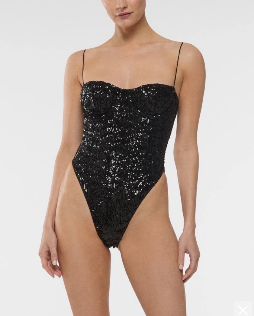 OSEREE PAILLETTES BALCONETTE MAILLOT can be worn as swimwear or as a bodysuit. Built in underwire for support and I converted the straps to a halter tie! Can fit small or medium
