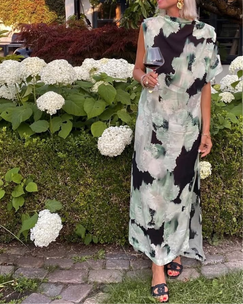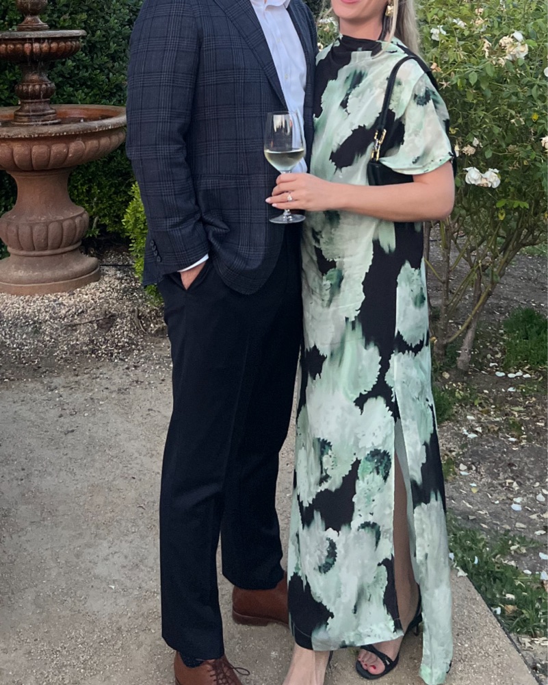 Green floral dress (recommend wearing a slip under it as it’s bit sheer). Great for go-to for weddings, welcome parties, baby/bridal showers, etc.
