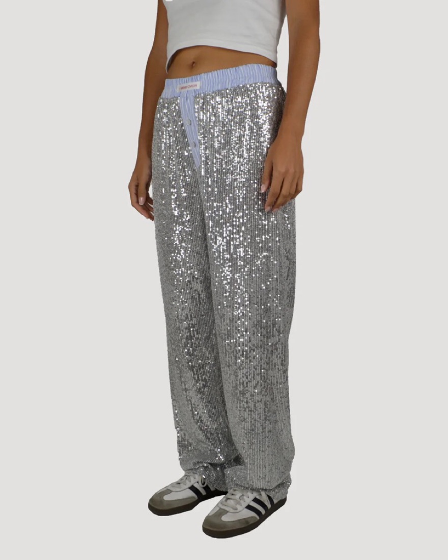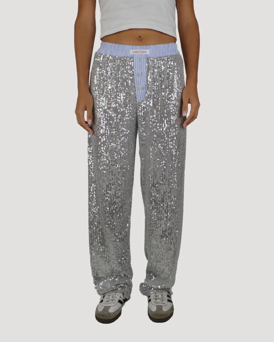 Handover Silver Sequin Pants by HANDOVER - Pickle