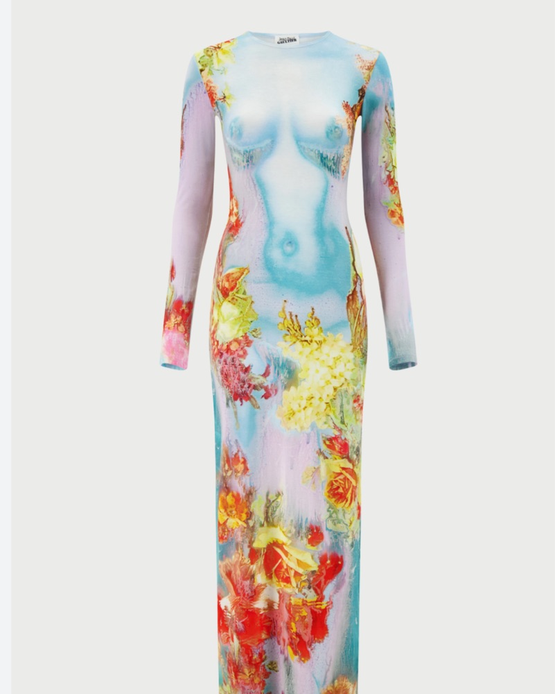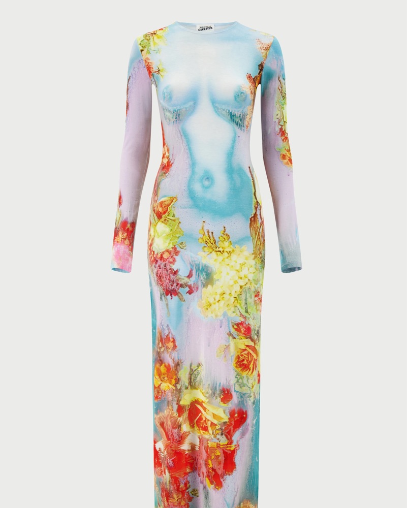 JPG Blue The Body Flower Maxi Dress by Jean Paul Gaultier - Pickle