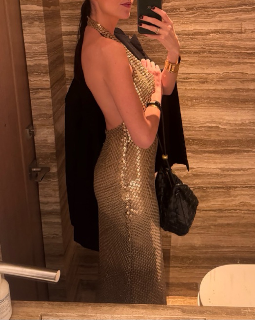 This dress is gorgeous + flattering! I got so many compliments wearing it. It was a little big on me but I was able to use tape + didnt have to wear a bra under it. It was comfortable to wear all night + was great to dance in!