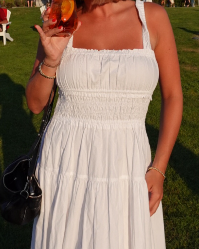 White Cotton Maxi Wilfred Dress from Aritzia. Sooo comfortable and cute