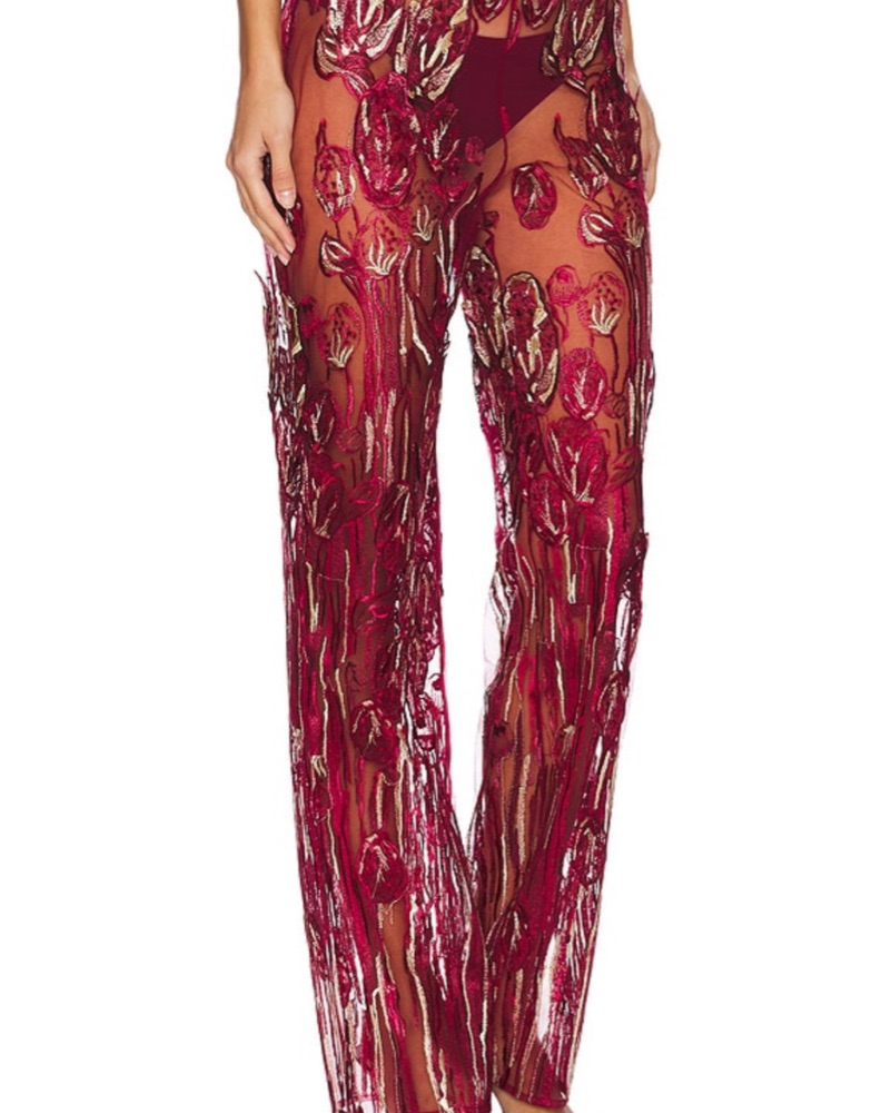Full Length Embroidered Pants in Red