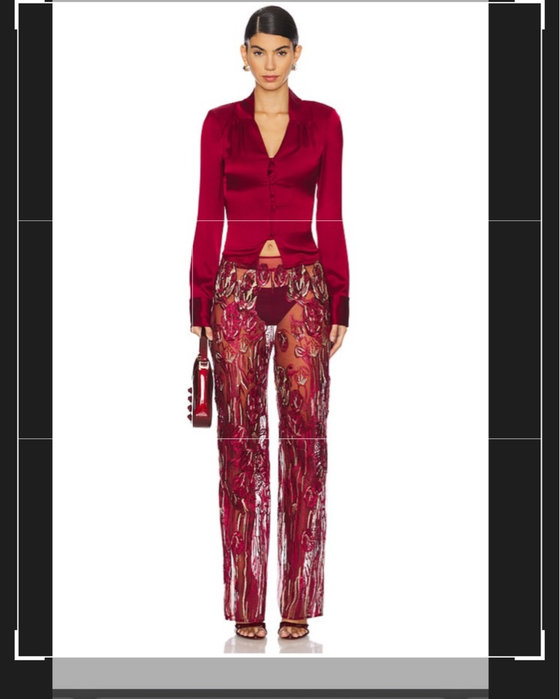 Full Length Embroidered Pants in Red by Kim Shui - Pickle