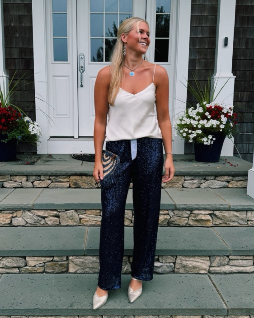 Handover Navy Sequin Pants by HANDOVER - Pickle