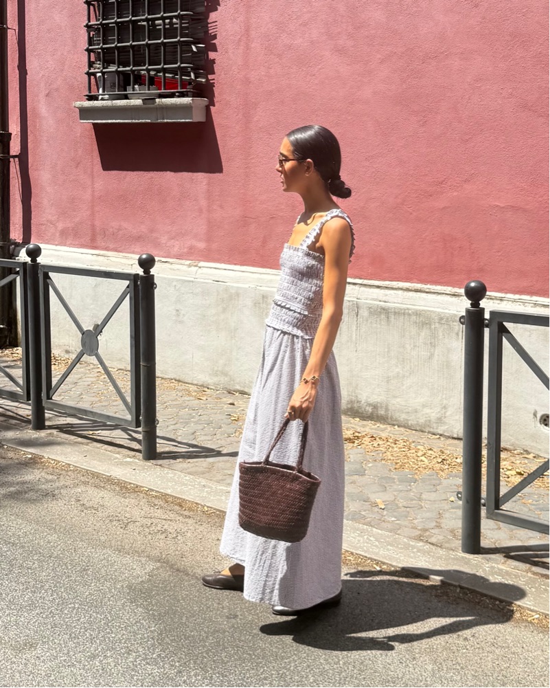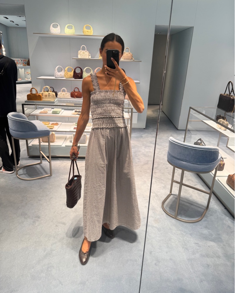 Hill house gingham brown and white maxi dress. Comfortable elastic fit. Fits Xsmall - small
