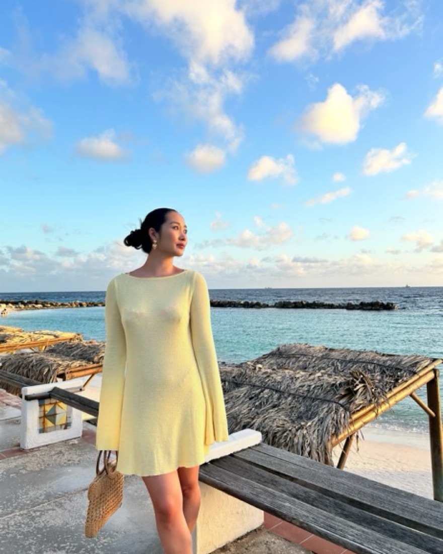 Breezy and stylish knit butter yellow dress from MESHKI is the perfect cover up for the beach. Its open back design adds a flirtatious touch, while the flowing silhouette keeps you comfortable and chic. Please treat with care!