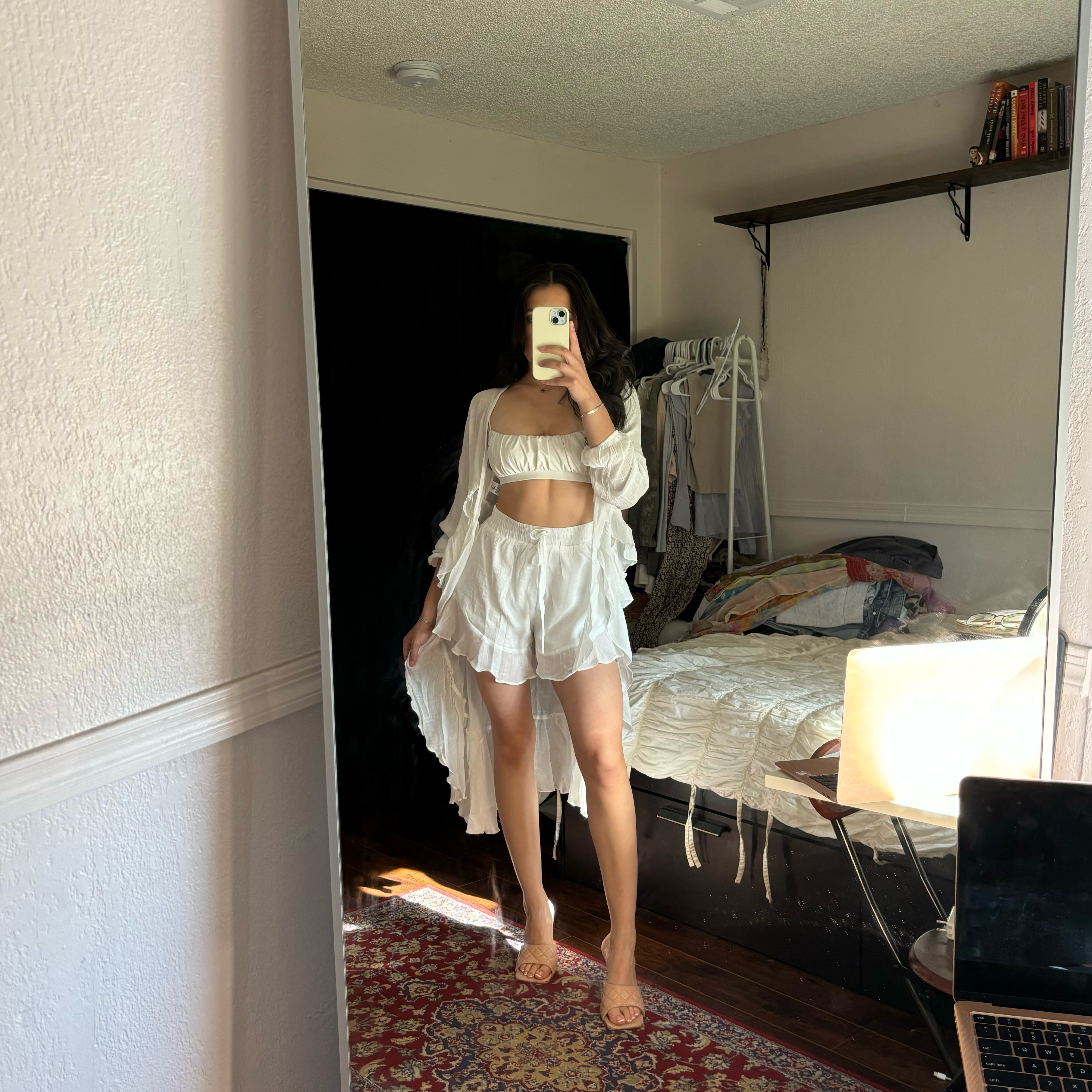 white ruffle short set