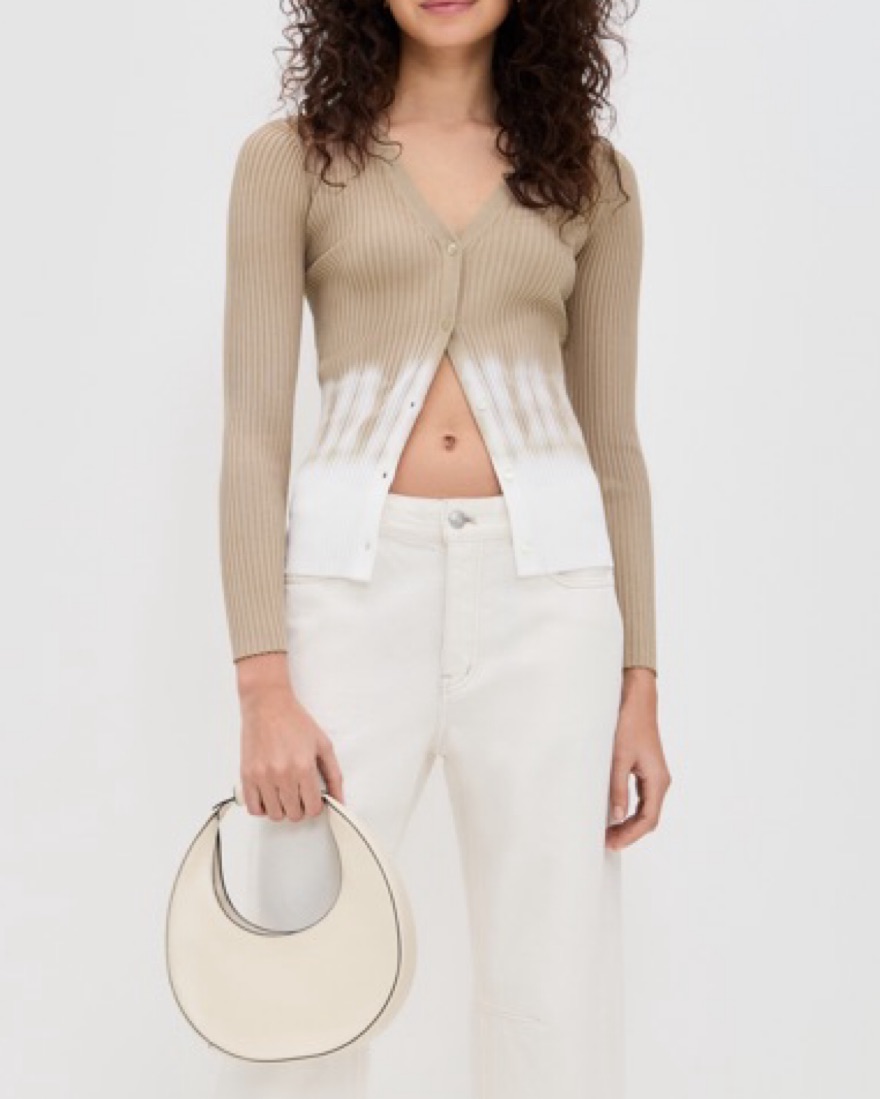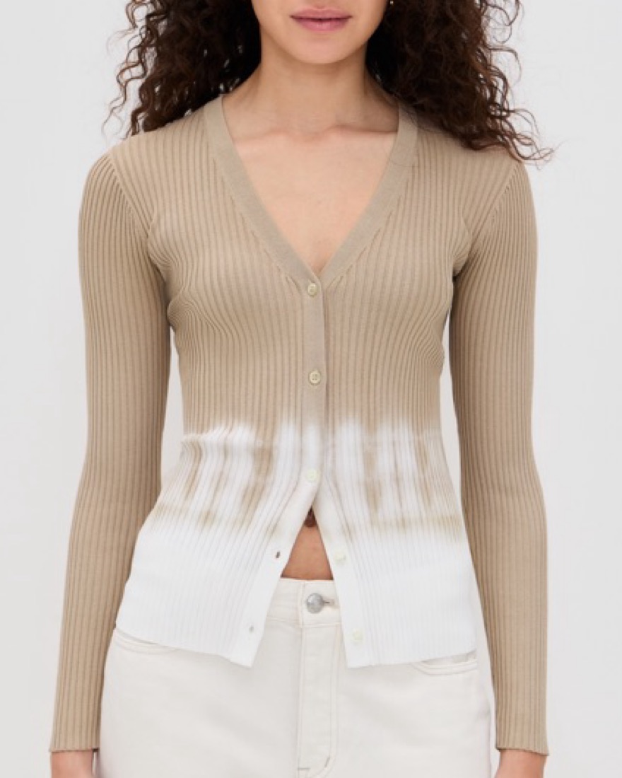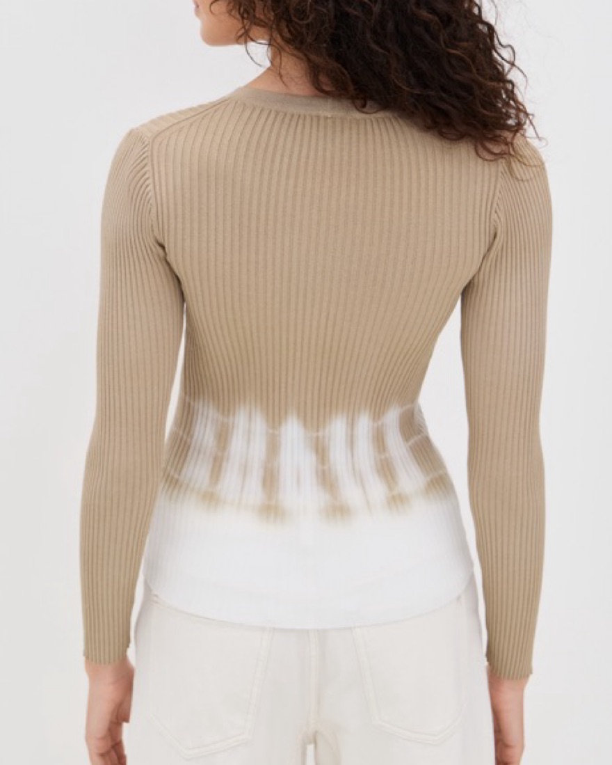 desert tie dye | tan and white | mid-weight ribbed knit | vneck