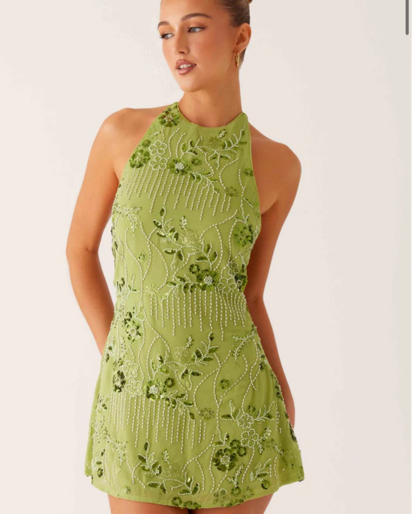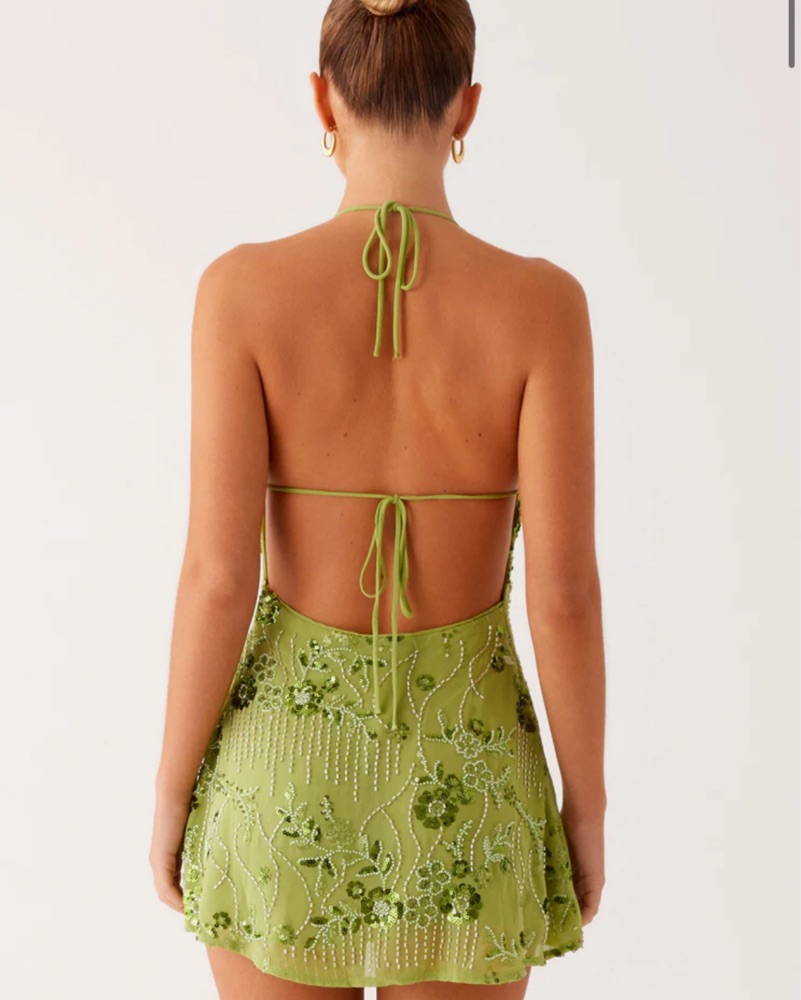 Vibrant Green Embroidered Mini Dress