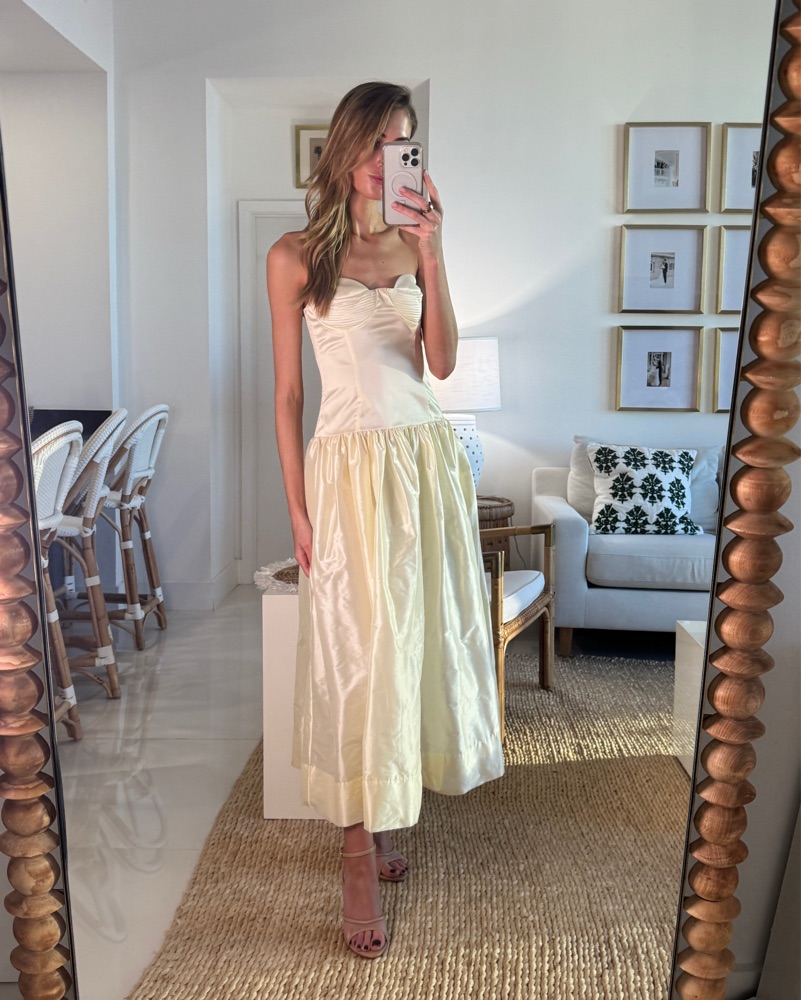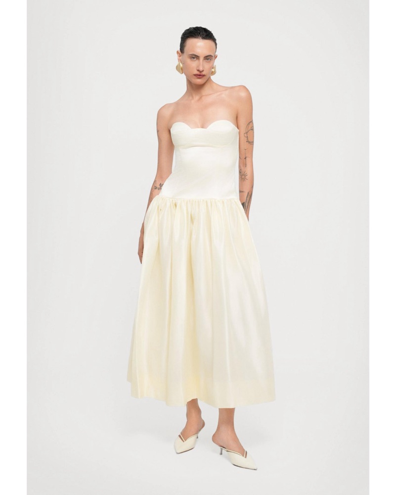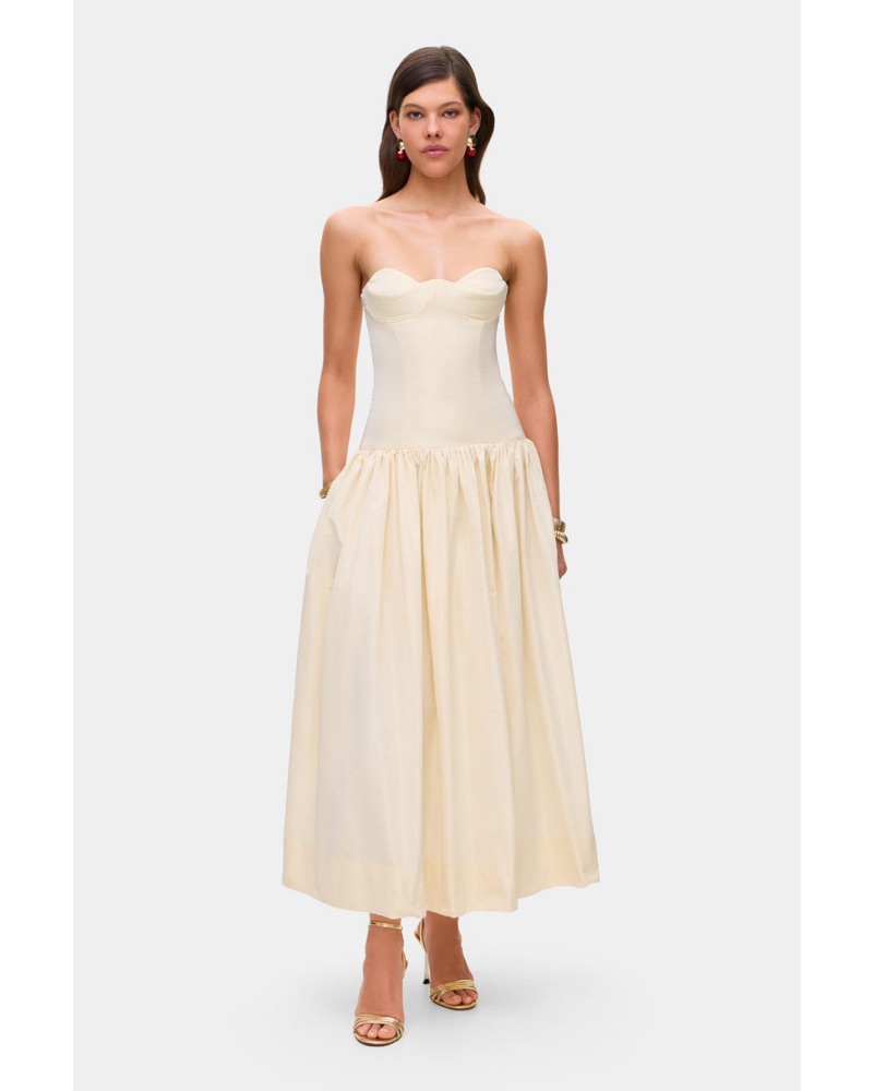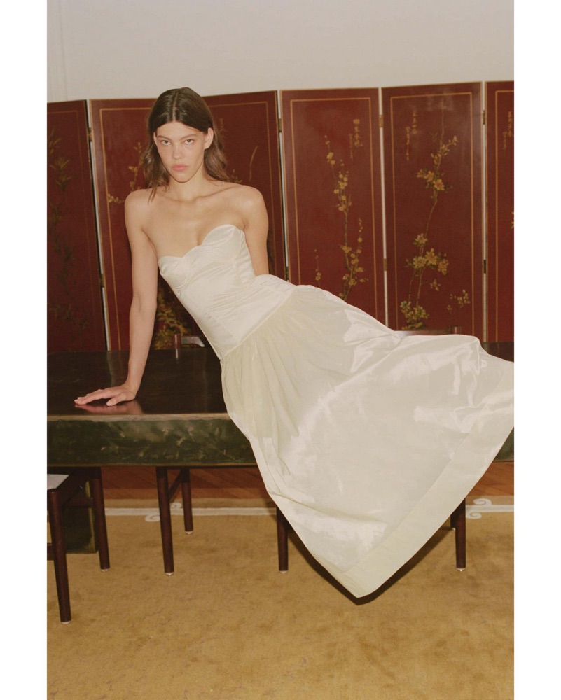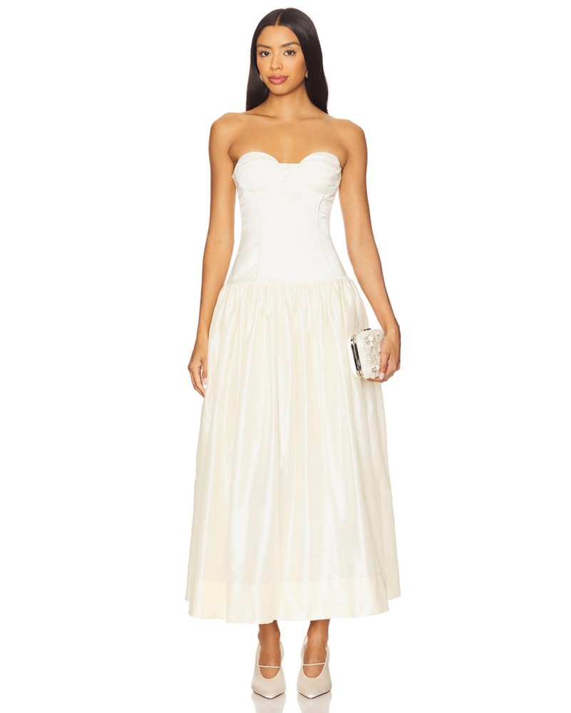 Brand new. Sold out. Size S/true to size - model is is 5' 9'' and wearing this size. Neckline to hem measures approx 45.5" in lengthTags: bride, bridal gown, white dress, engagement photos, courthouse wedding, wedding dress, wedding gown