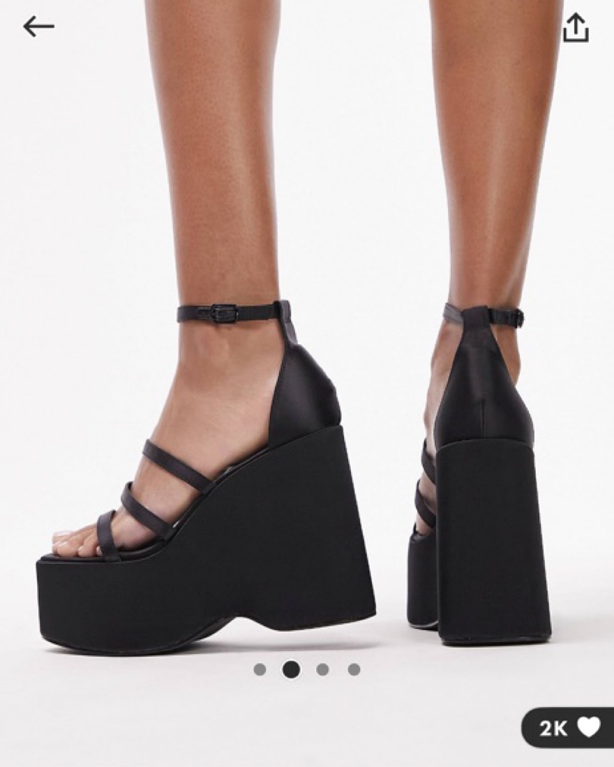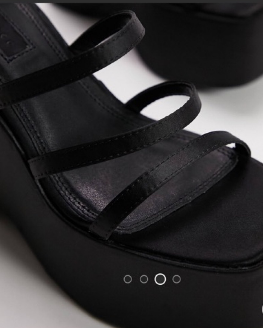 Asos; fits size womens shoes 6.5-7; 5" heel and satin finish obessed with these!!!