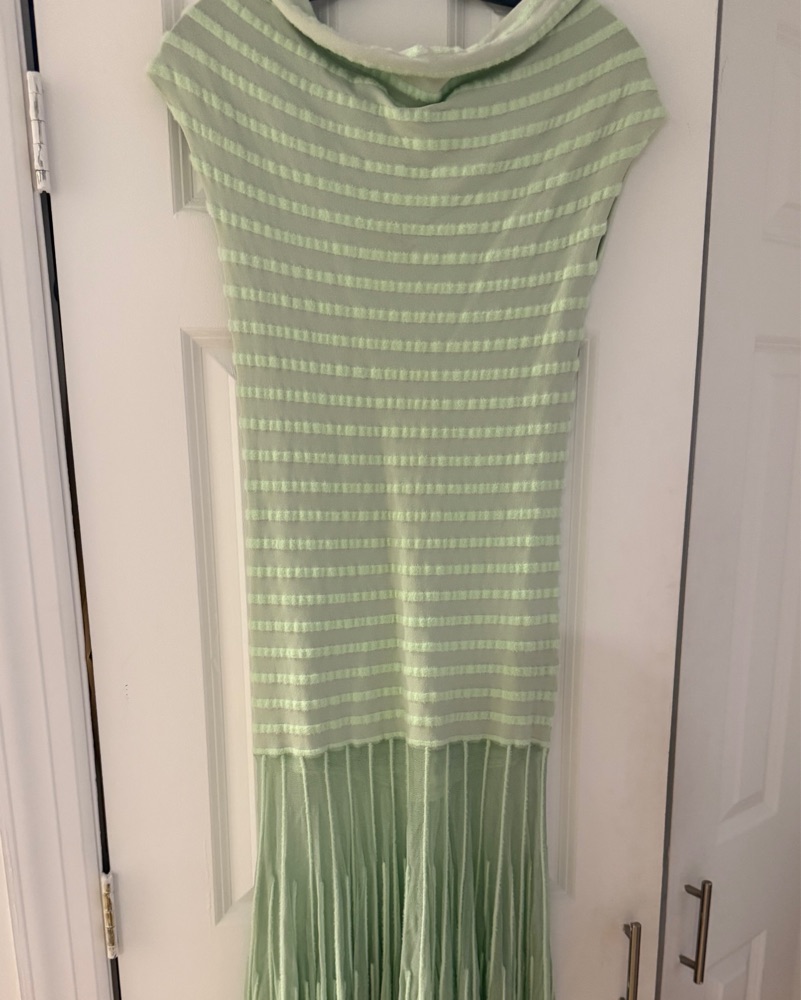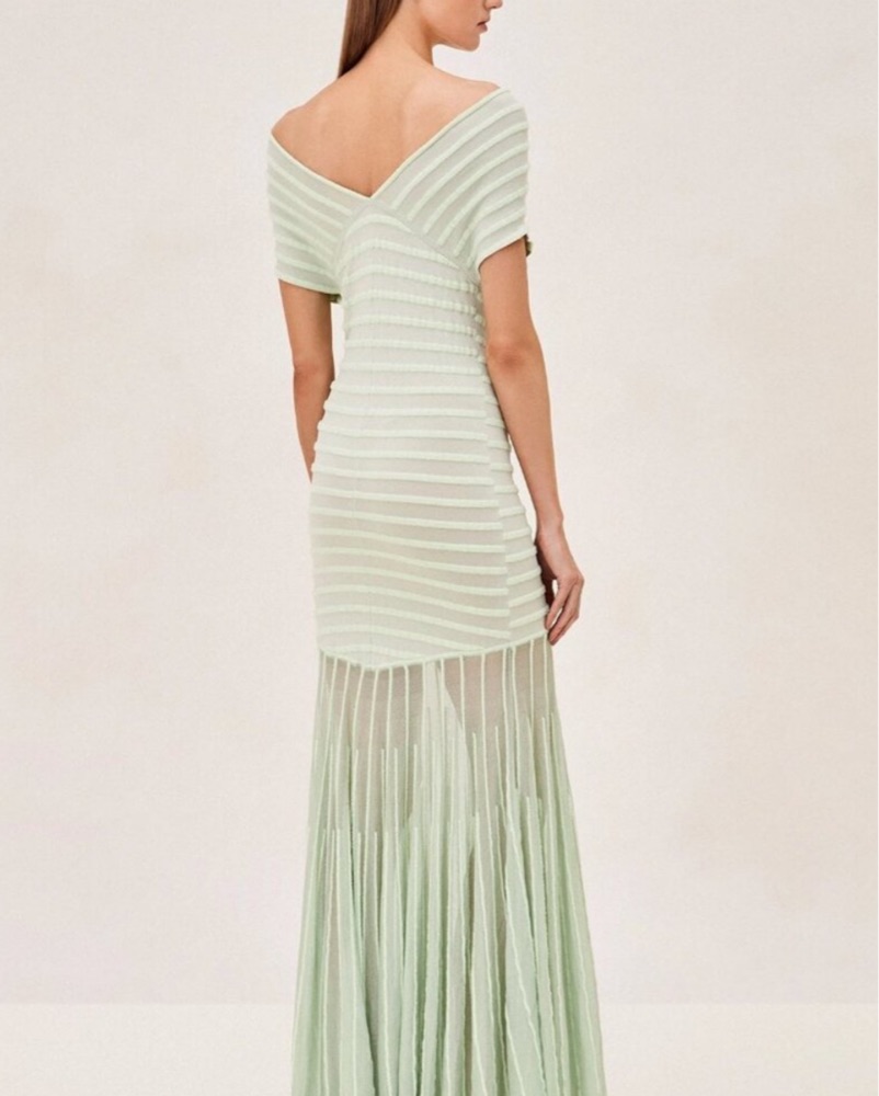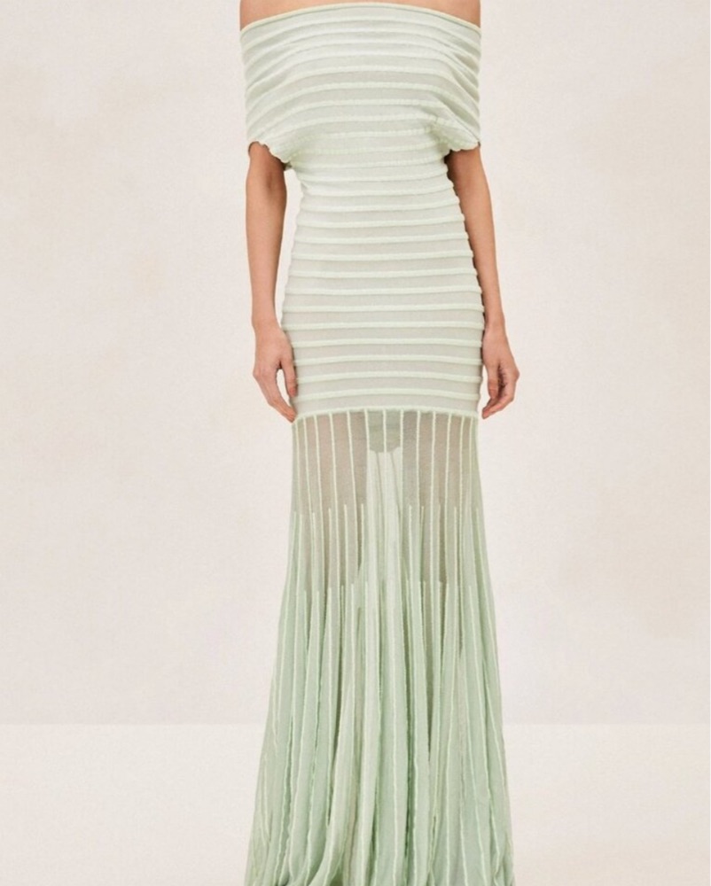 Alexis Marce Off-the-Shoulder Pleated Knit Maxi Dress