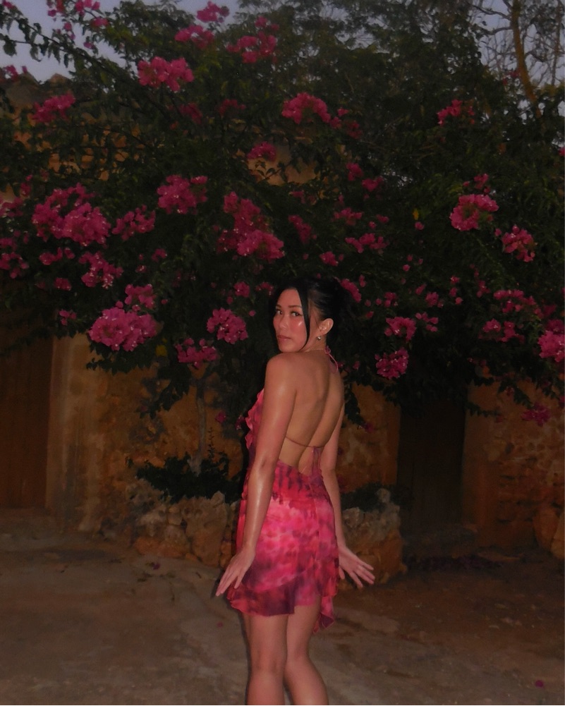 Size XS. Halter tie. Deep V neck. Mesh material but not see through. Backless. Perfect for vacation.