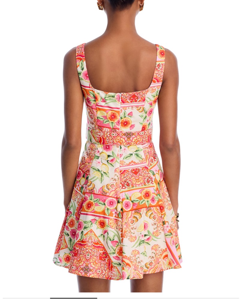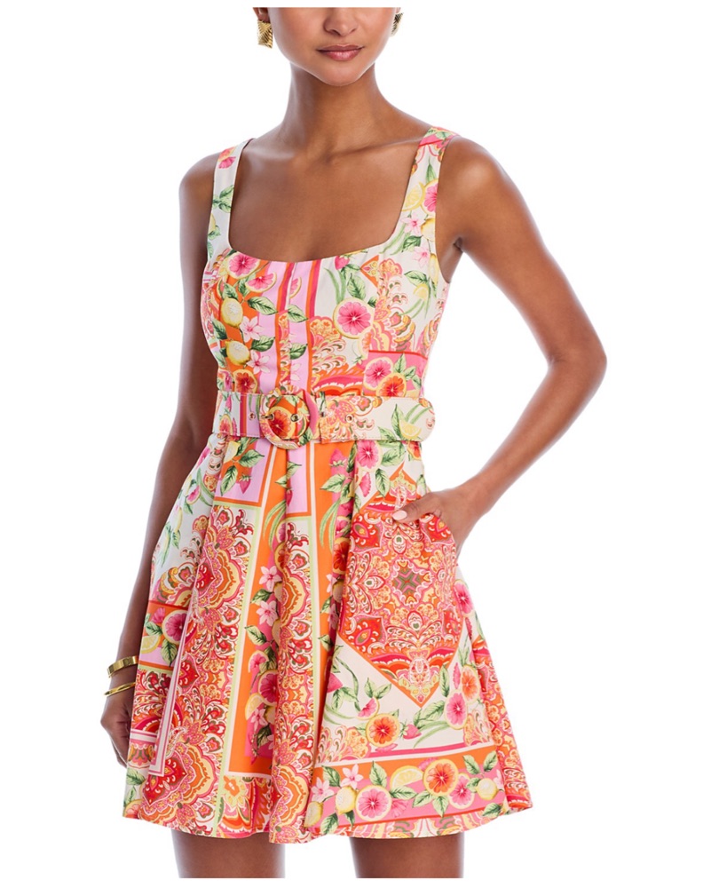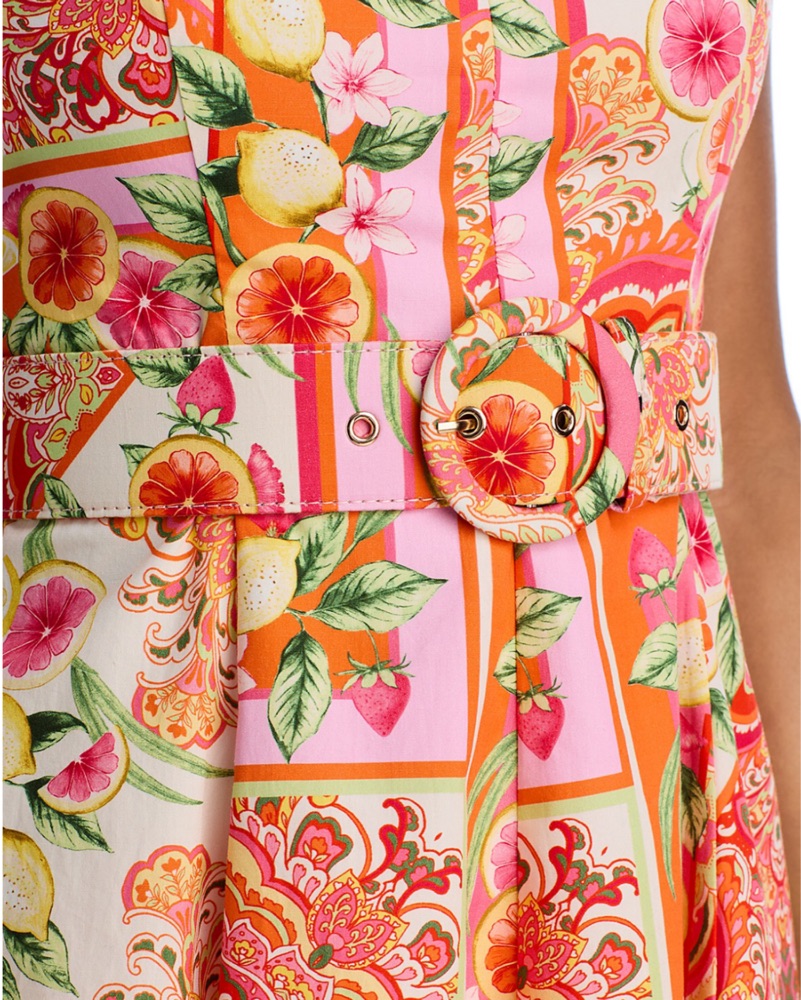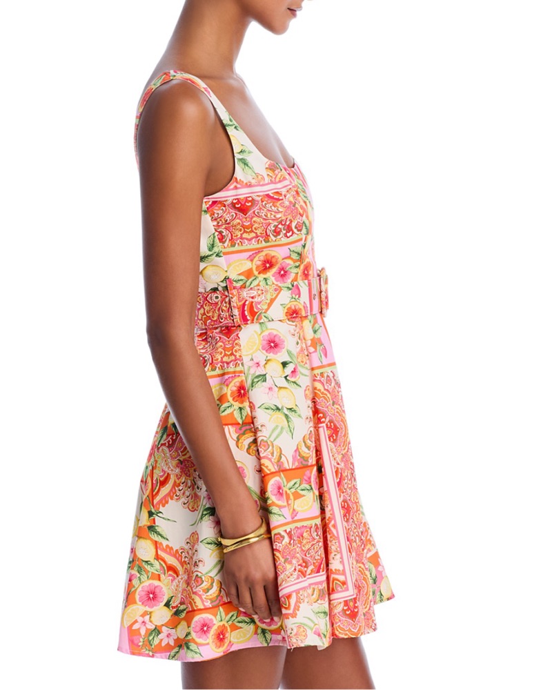 Fruit Tile Belted Mini Dress. True size Medium but has a belt you can cinch the waist with. Perfect for Italy vacation. • Scoop neck