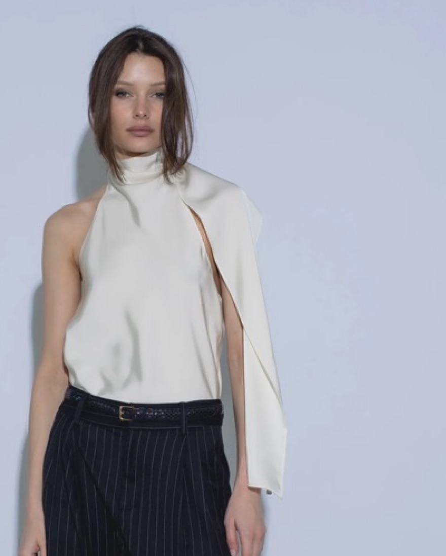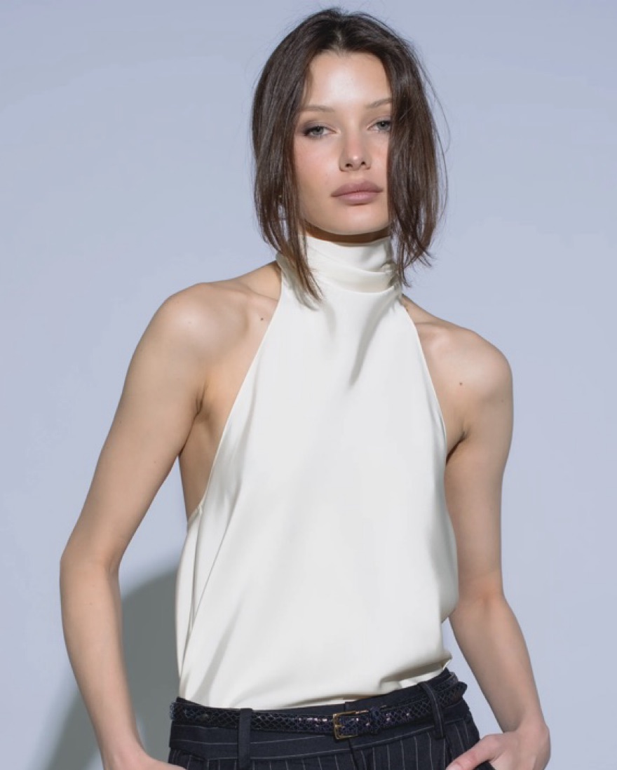 Centre Piece Eden Scarf top in color vanilla size Medium. White silk halter neck with open back. Such a perfect night out top and can be dressed up for events. Amazing for a night out or a party.