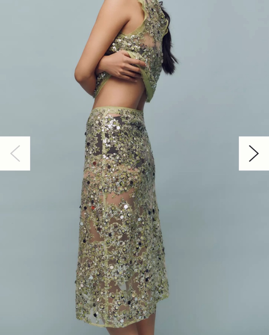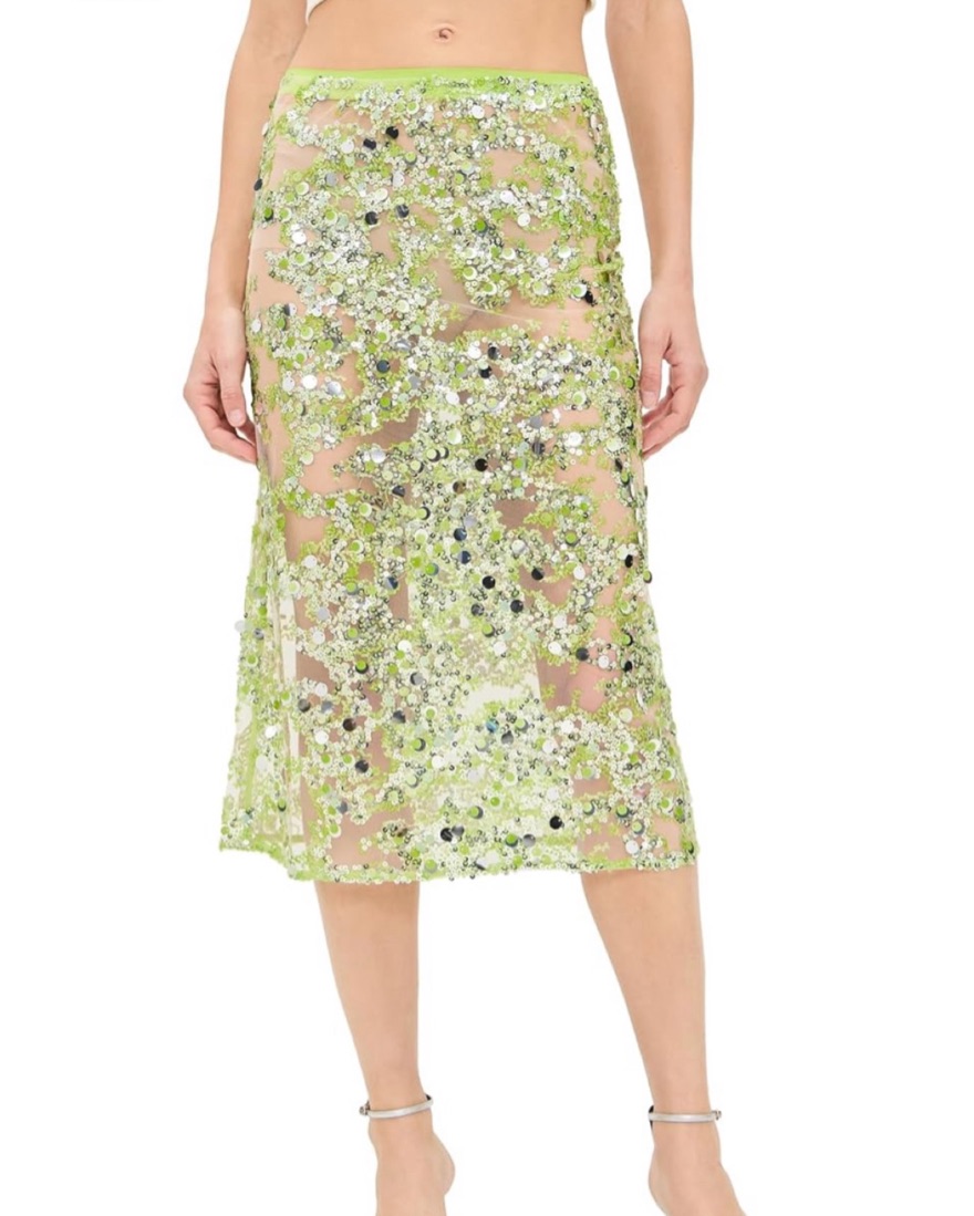 Baum Shania Sequin Skirt in Herbal Garden. Size 34, fits XS/0-2. Sheer