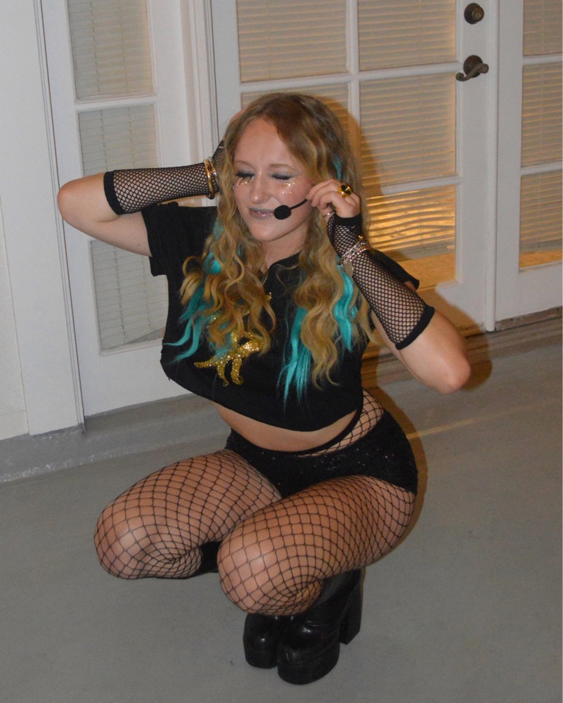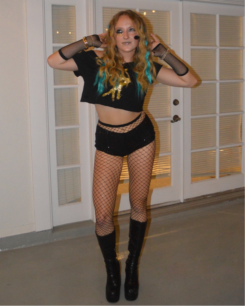 Literally loved this. Includes: top, hair extensions, tights, gloves, boots optional. Does not include shorts (they’re not mine) or the microphone cuz I lost it.