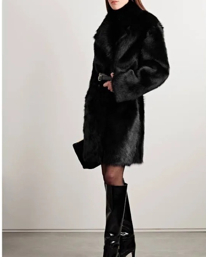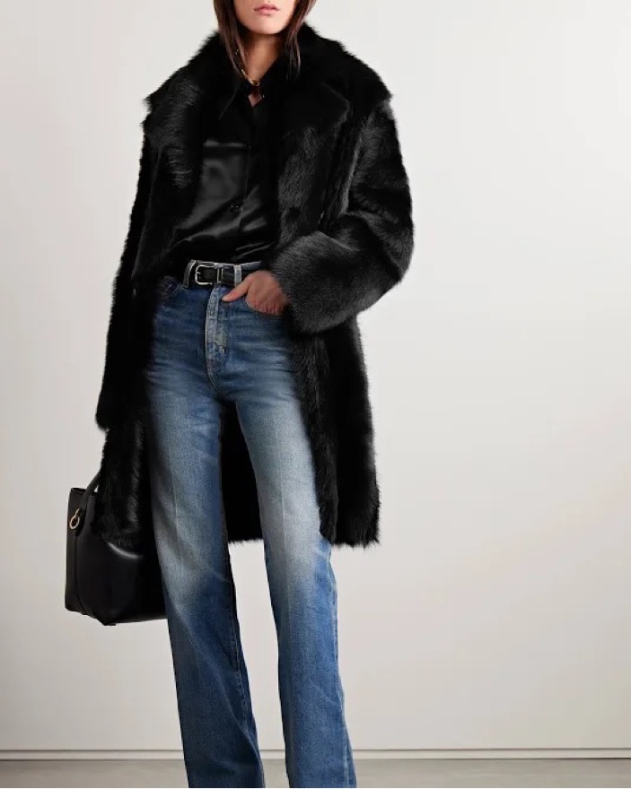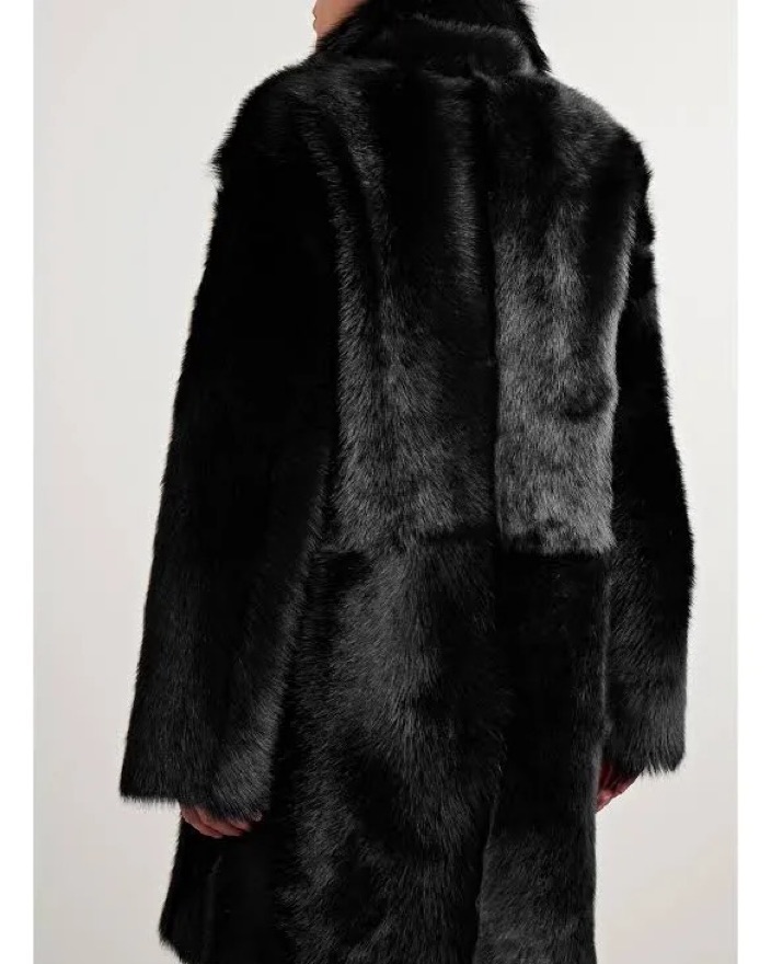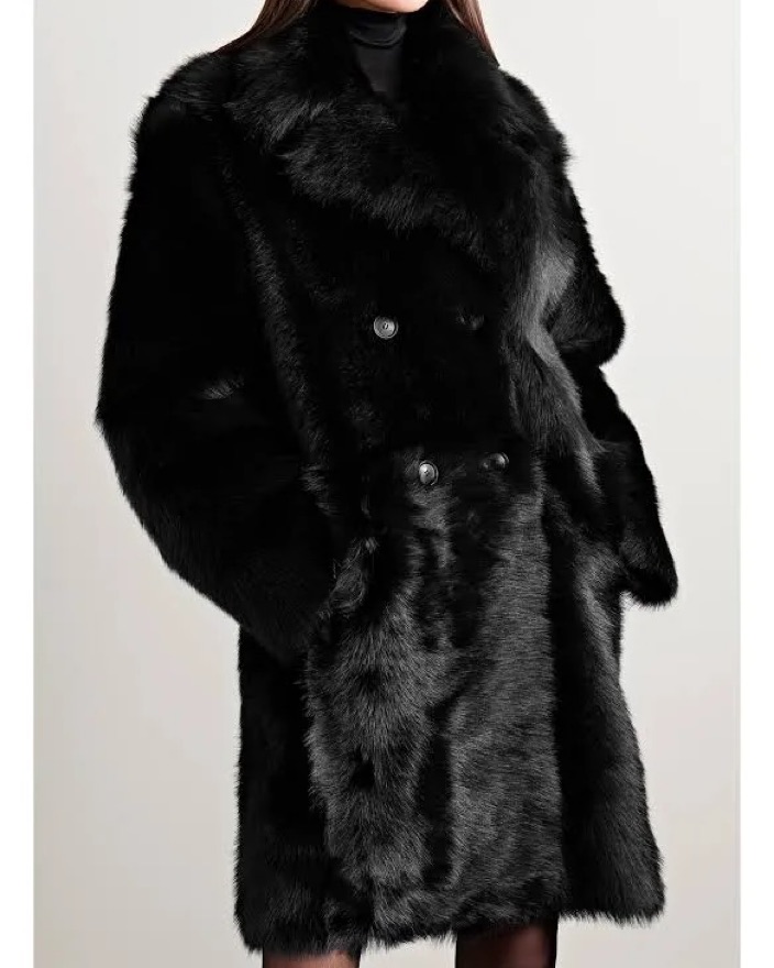 Nili Lotan's 'Faustine' coat is made from lustrous black shearling in a generous double-breasted silhouette that envelops your body. It has notched lapels and a smooth silk lining for effortless layering.