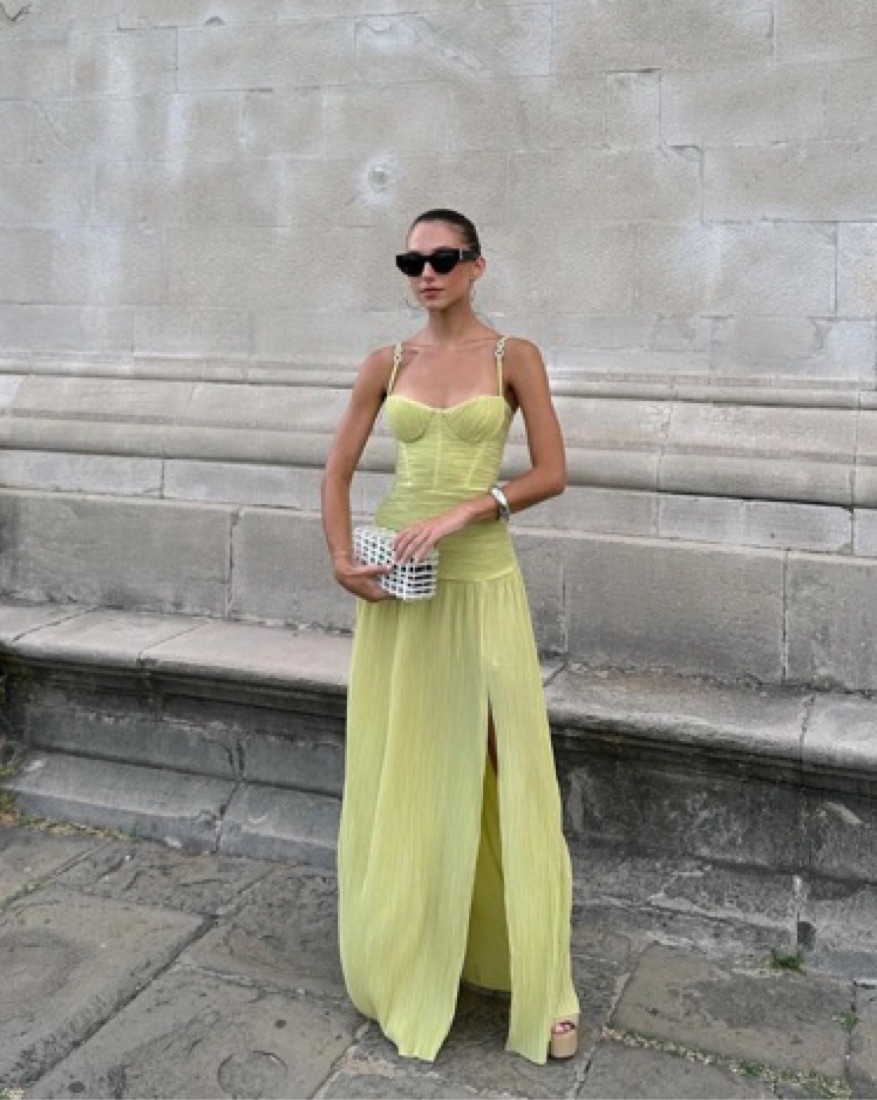 Very flattering, no stretch, snatches your waist. Received tons if compliments. HOWEVER this dress is past its prime - the bottom is all grey and ragged. Its still wearable but you should know that. Also would not recommend for someone with a butt. Iām a 0-2 but this was very uncomfortable for me.