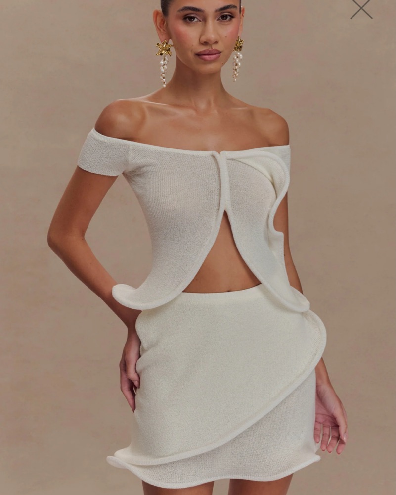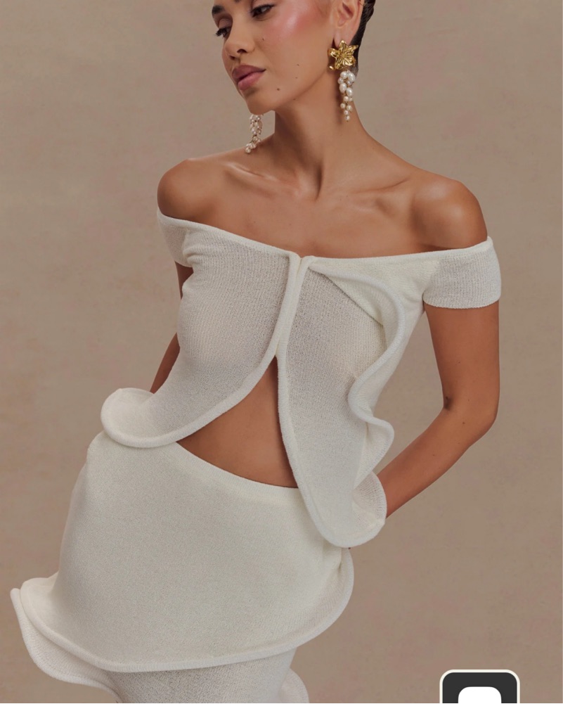 This stunning off-the-shoulder set is perfect for a glamorous event. The figure-hugging silhouette and dramatic ruching create a stunning, sophisticated look.