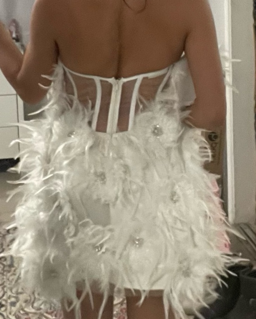 Ostrich feather mini corset dress. Perfect proposal dres/ engagement part dress/ bachlorette party dress/ second wedding dress
