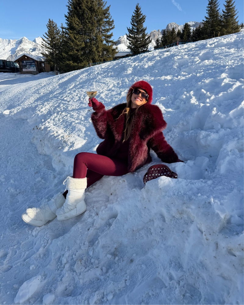Maroon matching snow set- thermal leggings (s) and turtle neck(s) with matching faux fur(m) and head band!