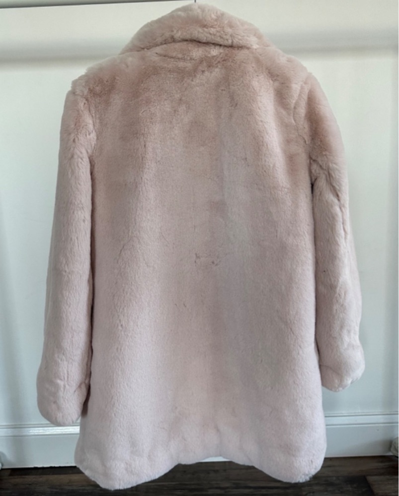 Embrace timeless elegance with the Apparis Women’s Faux Fur Coat, a chic addition to any wardrobe. In a delightful light pink hue, this mid-length jacket coat offers a plush faux fur exterior, complemented by a warm and luxurious lined interior. The solid color design and sophisticated long-sleeve c