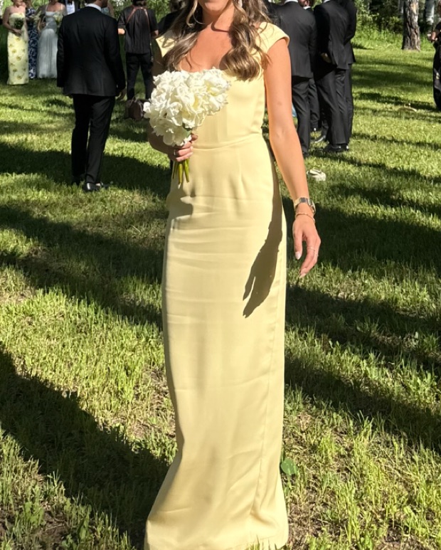 Square neck Cap sleeves Scoop back Concealed zipper closure at center back Bodycon silhouette Lined I’m 5’6”, dressed hemmed for 3” heels