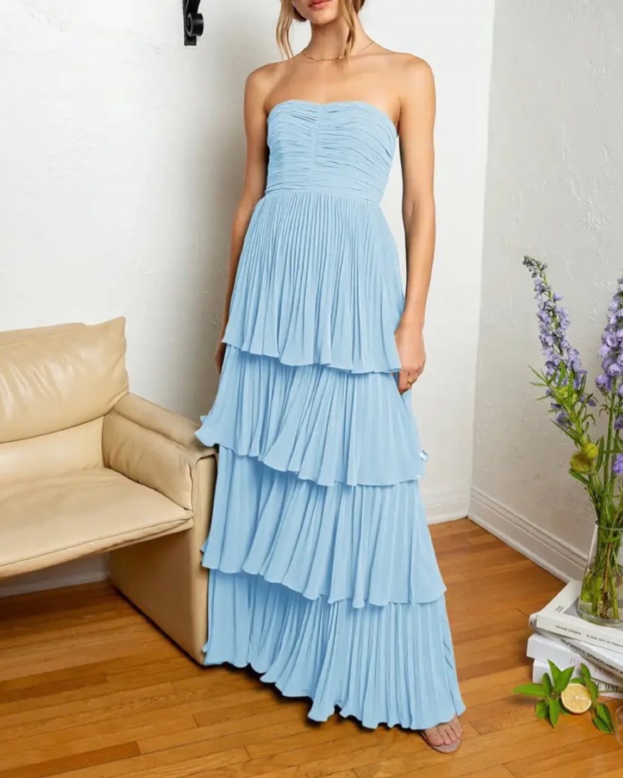 Fame + Partners. Light blue strapless pleated gown never been worn + still has tags