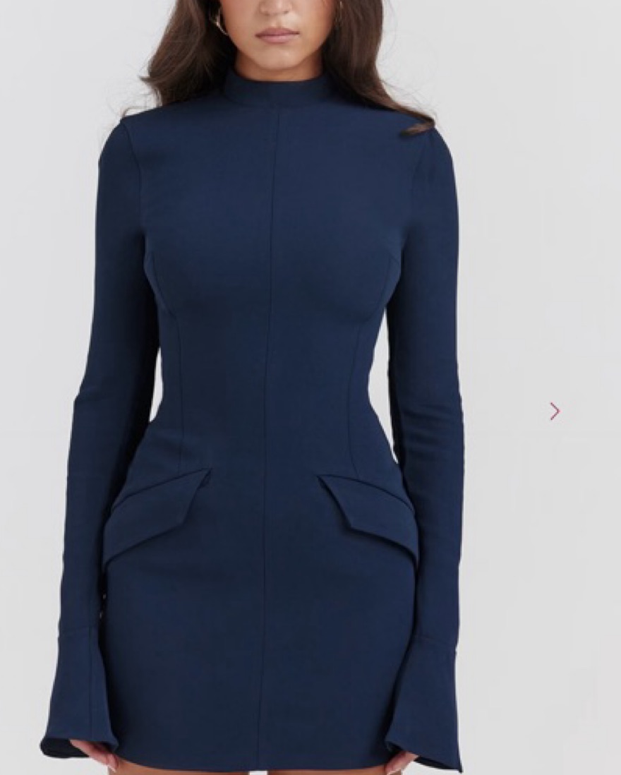 House of CB *dupe* long sleeve mini dress in Navy. Fits exactly like the real one! I’m 5’8” and this was the perfect length. Perfect for any formal celebration or night out.