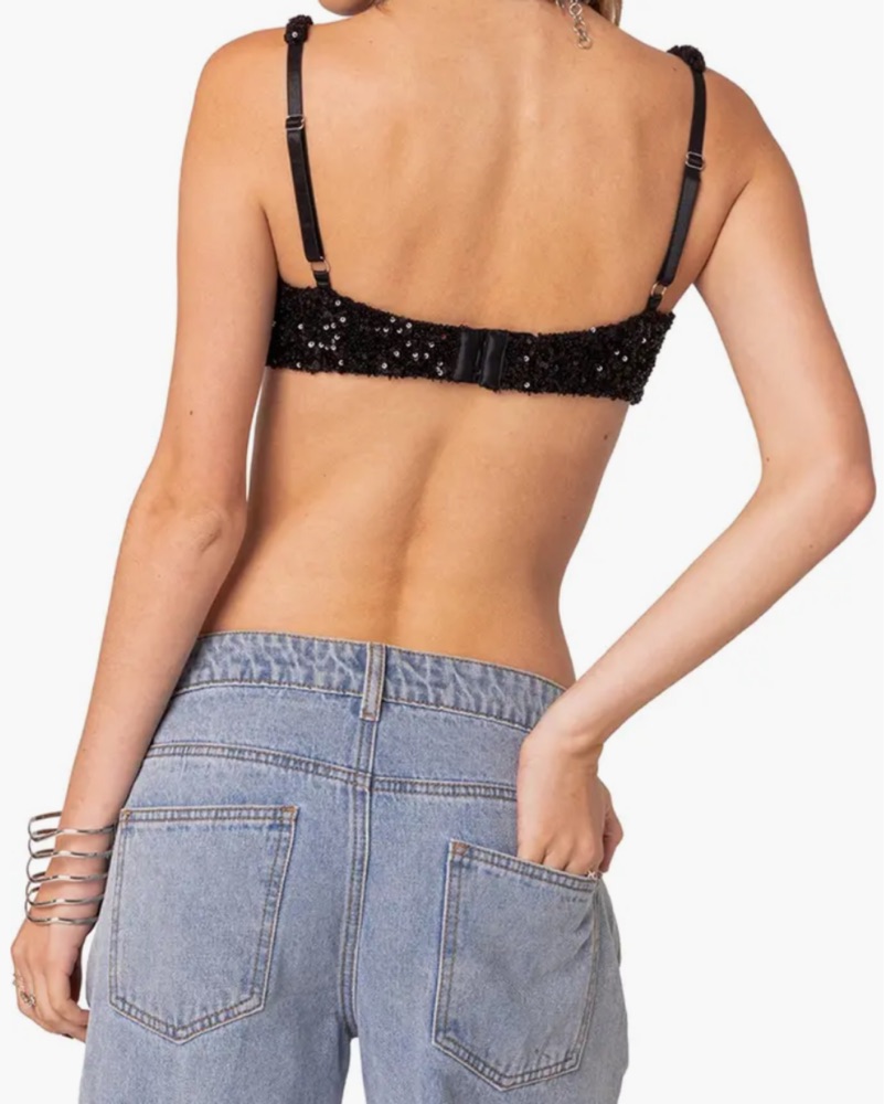 Black Sequin Bralette Bra Crop Top by Edikted - Pickle