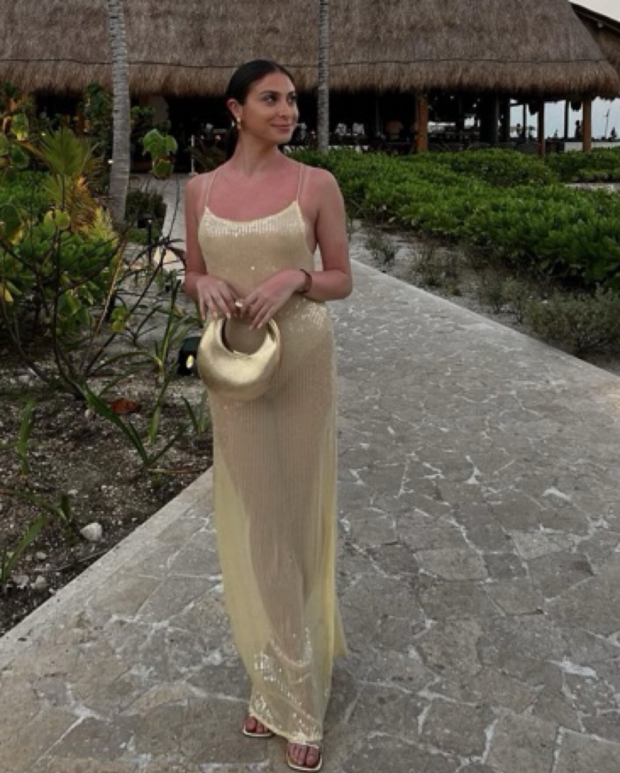 Gold Sheer Sequin Maxi Dress