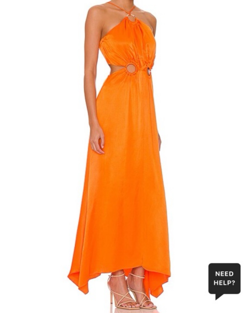 Gorgeous orange maxi dress, flowy and perfect for a vacation or wedding! Light stains on the bottom but not noticeable with the asymmetric hem