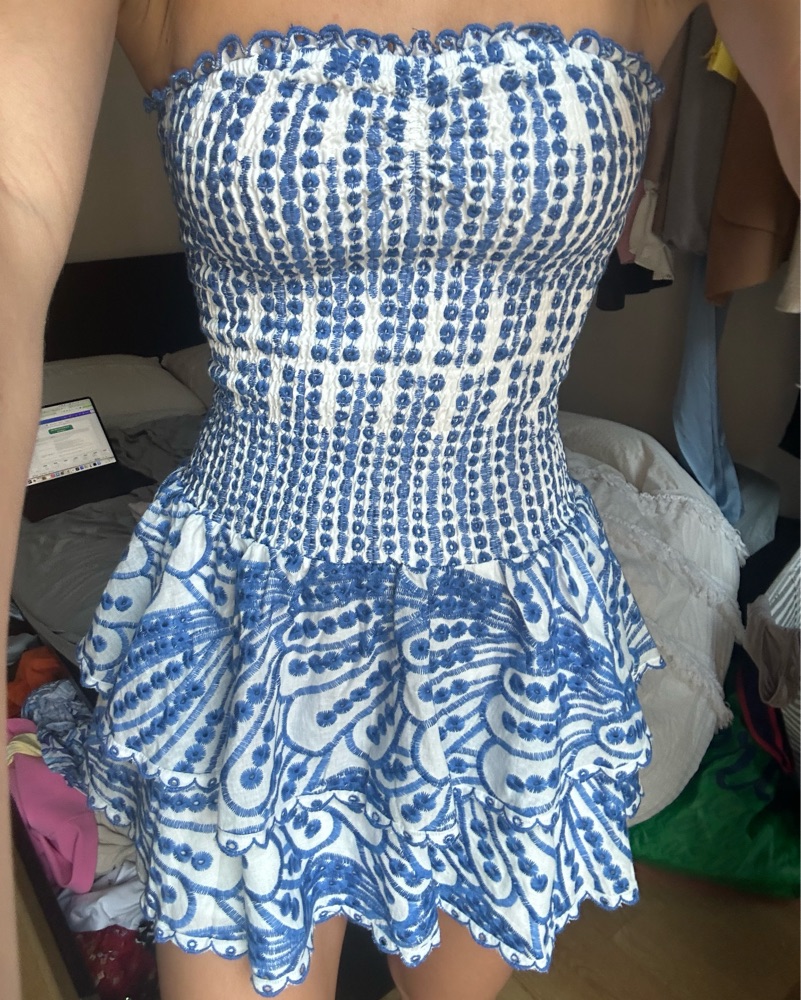 Super flattering blue and white dress. Bought at a boutique in Cannes France. Perfect for a beach vacation or summer day. Similar to love shack fancy