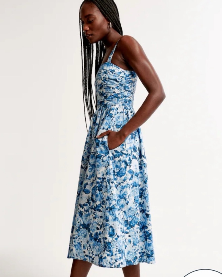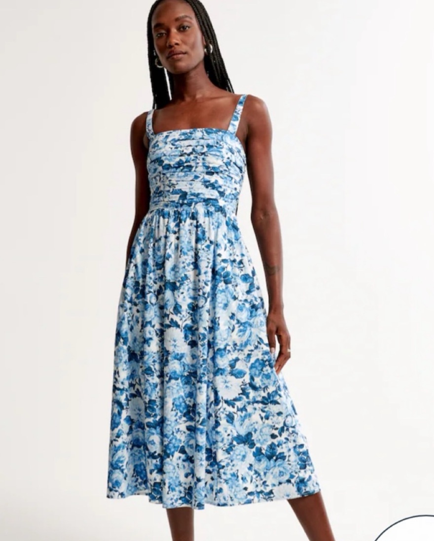 A&F Emerson Blue & White Midi Dress XSP by Abercrombie and Fitch - Pickle