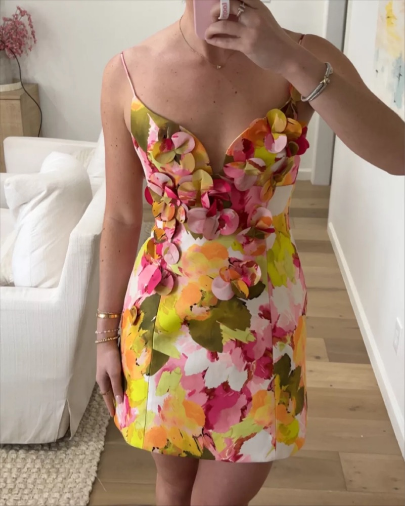 Super popular sold out Acler isla cocktail dress in size 4! Perfect for any event #colorful #formal #party #cocktail #floral #acler #green #pink #white #mini